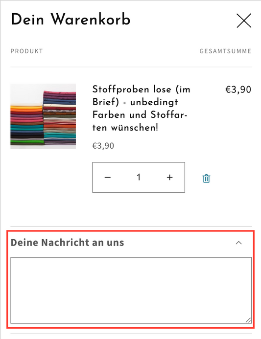Stoffproben lose und unbeschriftet (im Brief) - unbedingt Farben und Stoffarten wünschen!
