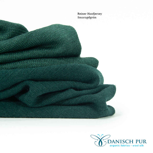 Fine organic wool ribbing in emerald green (organic, mulesing-free) in a tube - matching the hemp jersey