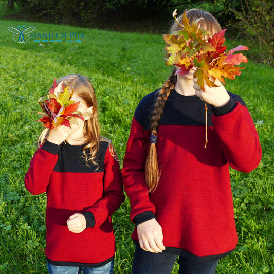 Organic wool jersey jacquard plain red mottled (Merino, kbt, mulesing-free)