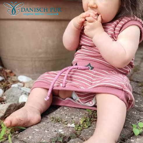 Coupon 70 cm Bio Wolle Seide ungleiche Ringel Altrosa(70% Schurwolle Merino, kbt, mulesingfrei, 30% Seide)