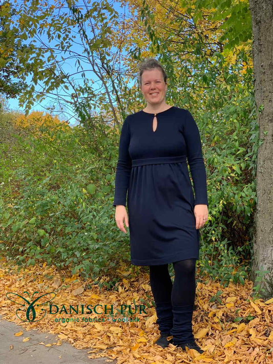 Organic wool jersey/wool interlock in charcoal blue (Merino, kbt, mulesing-free)