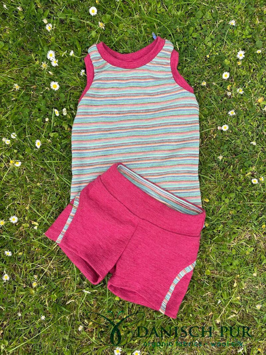 Fine organic wool ribbing in light strawberry red (organic, mulesing-free) in a tube