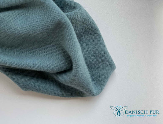 Very fine organic wool ribbing in aquamarine (organic, mulesing-free)