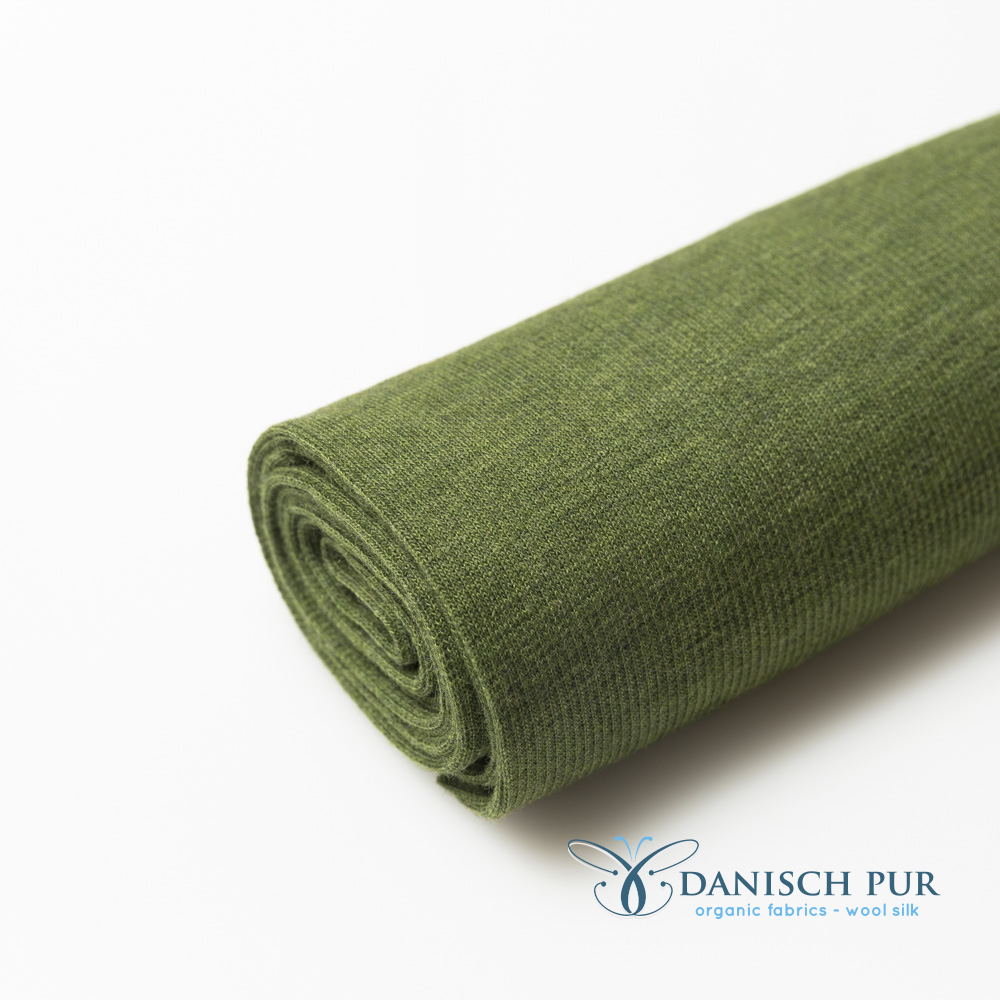 Wool cuffs are ideal as a finish for all wool garments. Since wool does not absorb water, it is particularly important for outdoor and baby clothing that no cotton cuffs are placed on the ends. These get wet and cold and also need more care (=washed more often) than the rest of the woolen garment. A wool cuff, on the other hand, requires just as little care as the rest of the wool garment. It keeps you warm even when it's wet, doesn't feel clammy when it's slightly damp and can simply be brushed out when it's dirty. If there are bad smells (smoke, sweat, traces of urine), simply airing out the wool cuffs is enough. Our organic wool cuffs (kbt, 97% new wool) are mixed with 3% elastane for long-lasting elasticity and durability.
