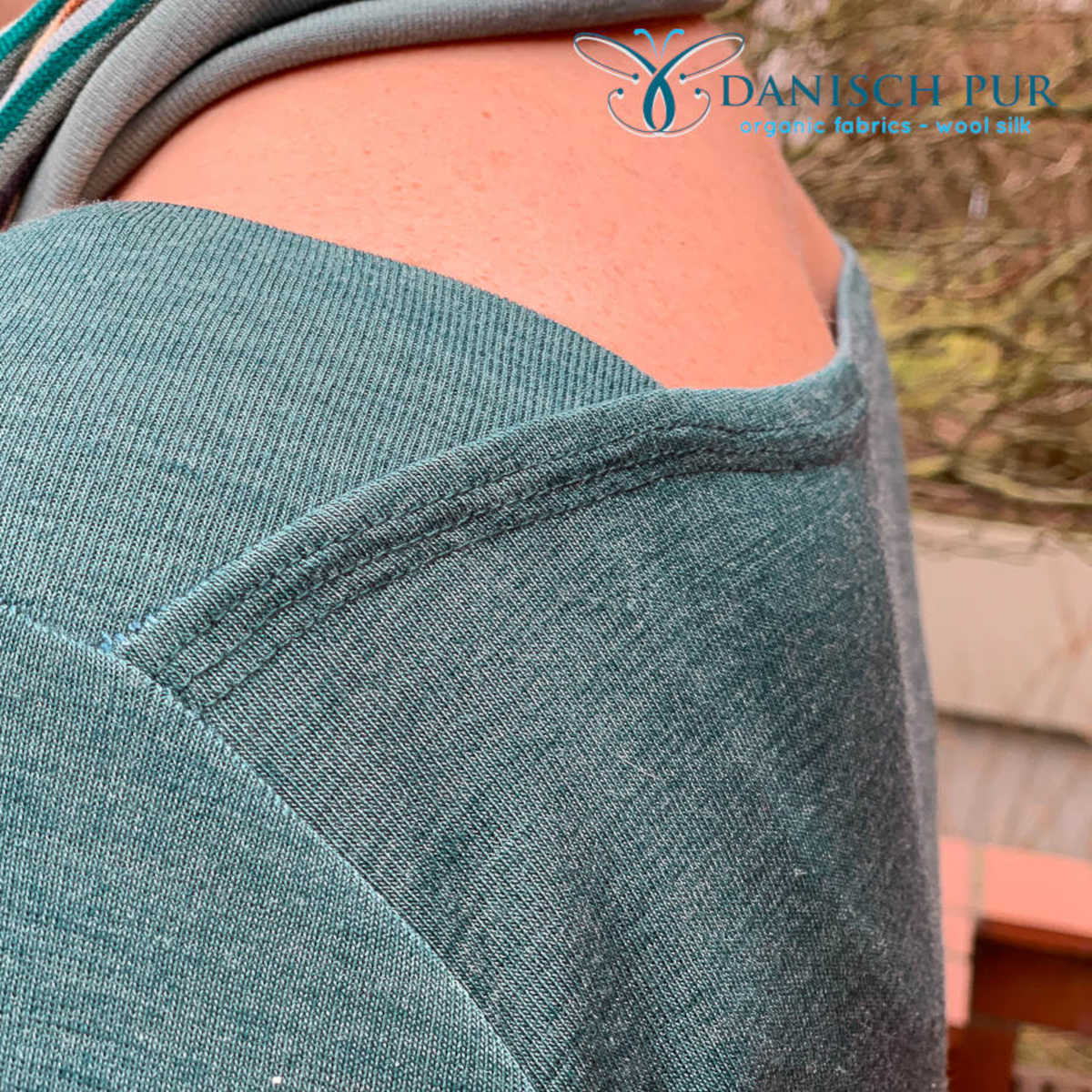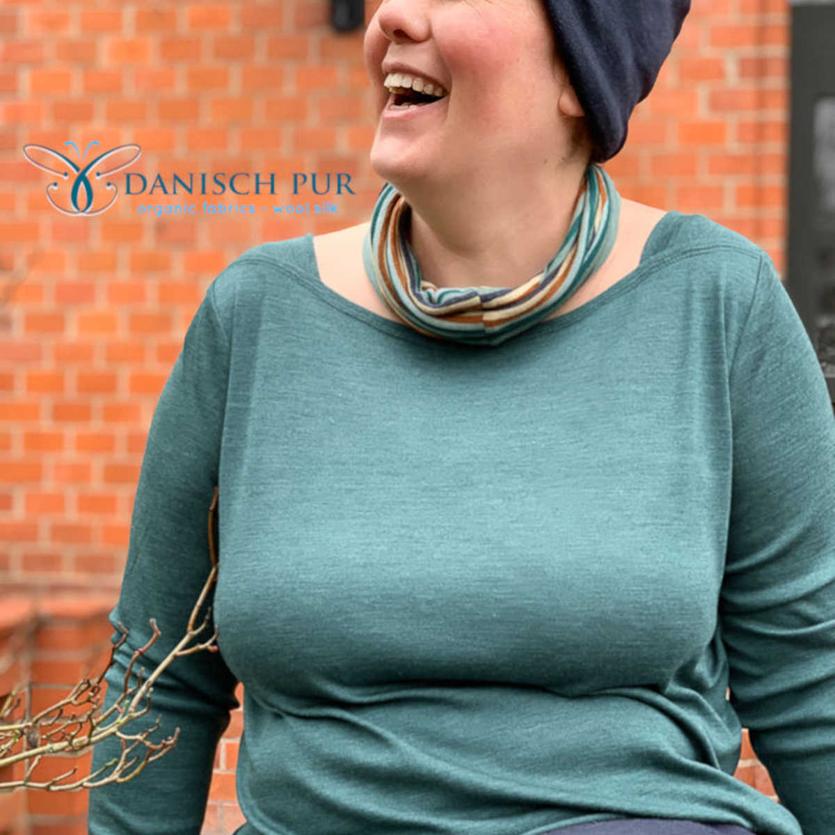 Wool silk fabric is stretchier than most comparable cotton jersey. Here it can make sense to sew one size smaller than normal and to stay with the usual dress size in length. As every pattern and build is different, it is highly recommended to place well-fitting garments on top of the appropriate pattern to provide a match.