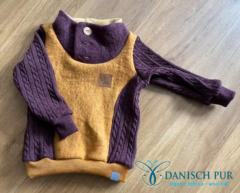 Our organic wool jersey fabric (kbt, made from 100% new wool, merino) is produced according to the highest ecological criteria. It is therefore particularly suitable for the sensitive skin of babies and toddlers, as well as for all clothing that is worn close to the skin. Outerwear is also given something very special by the delicate shimmer of the wool fabric, so that the fabric is also ideal for adult clothing.