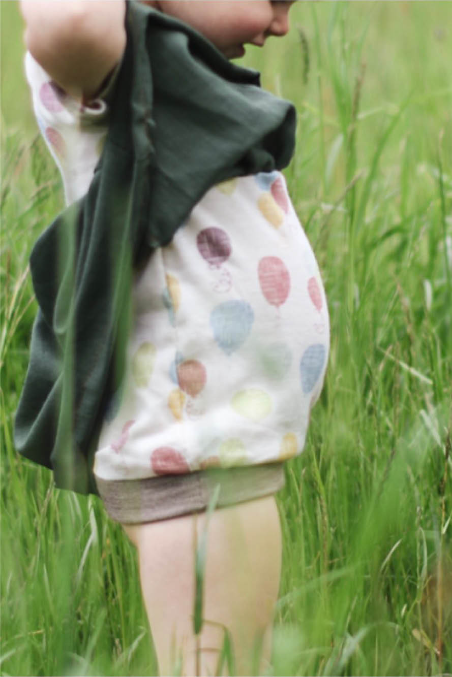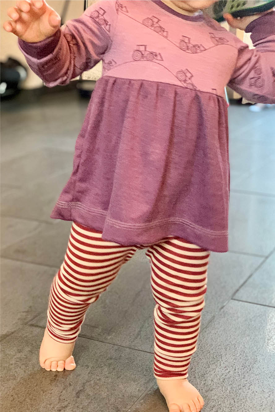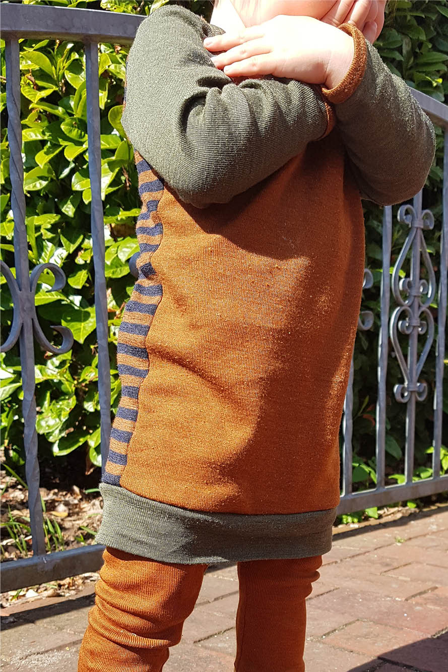 The body is cut wonderfully narrow especially for wool-silk. So that it fits every child, the size is selected according to chest circumference and the length is easily adjusted. How to do this is explained in detail in the e-book. You will also receive many helpful sewing tips, step-by-step instructions, a detailed description of the different variants and lots of design examples on a total of more than 150 pages of sewing instructions.