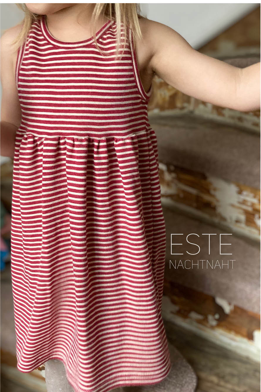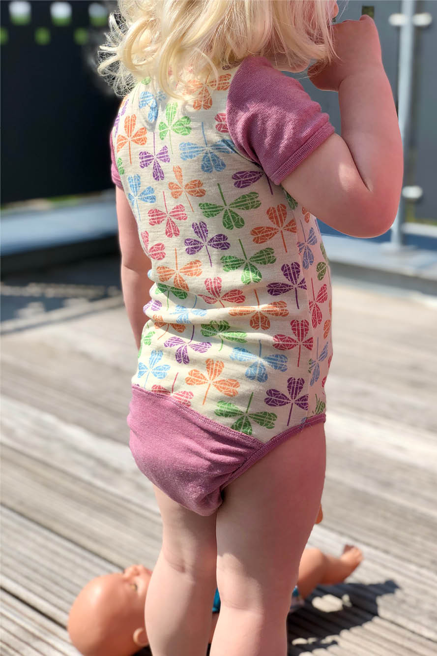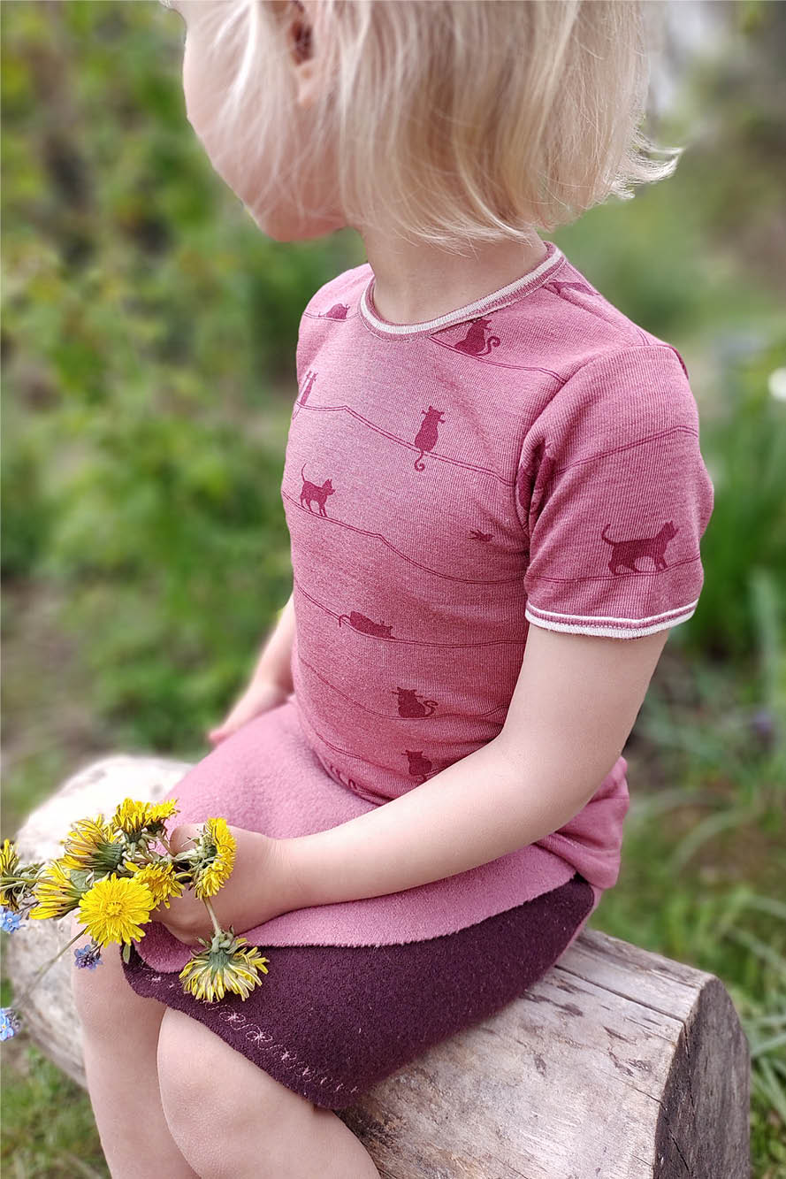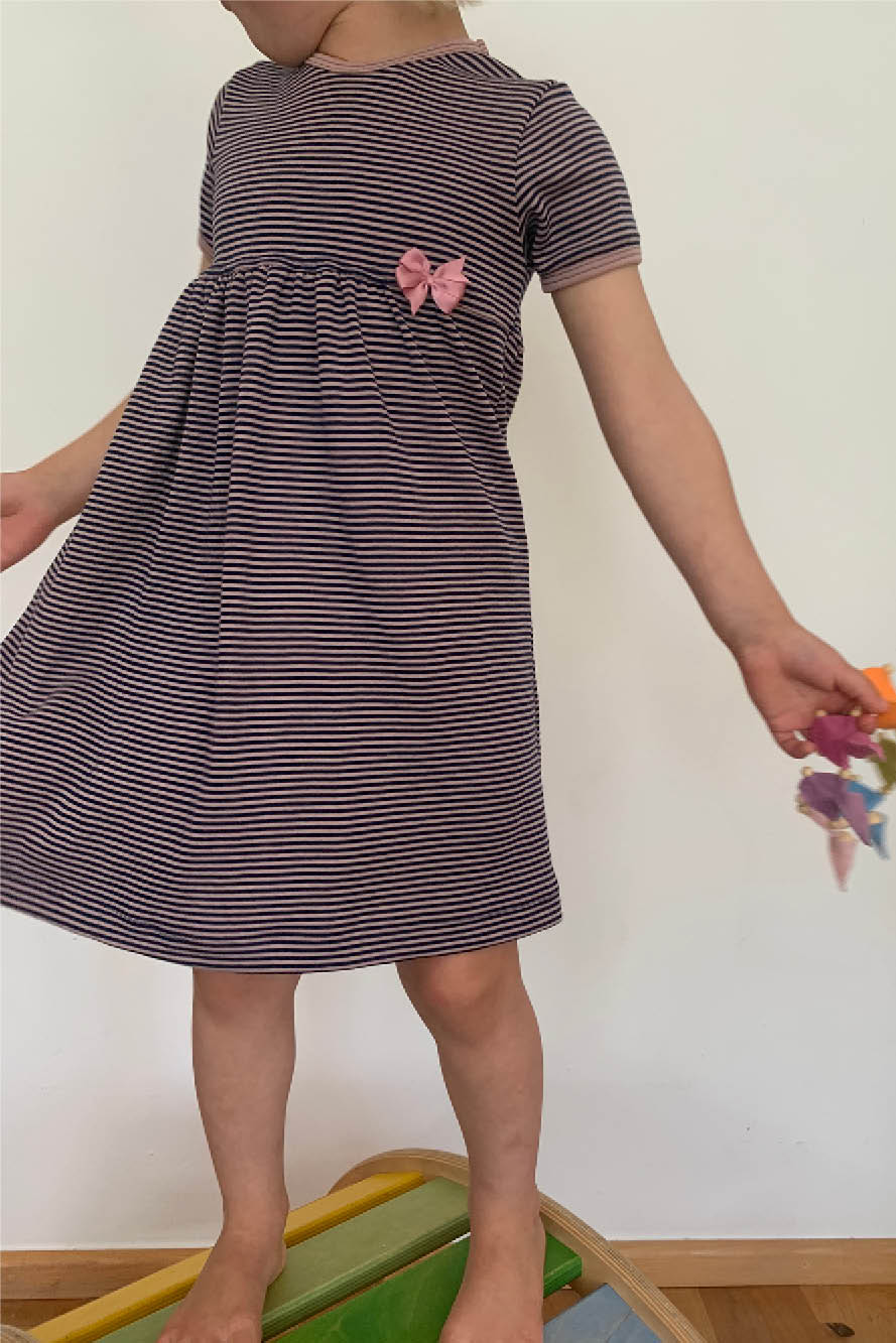 The body is cut wonderfully narrow especially for wool-silk. So that it fits every child, the size is selected according to chest circumference and the length is easily adjusted. How to do this is explained in detail in the e-book. You will also receive many helpful sewing tips, step-by-step instructions, a detailed description of the different variants and lots of design examples on a total of more than 150 pages of sewing instructions.