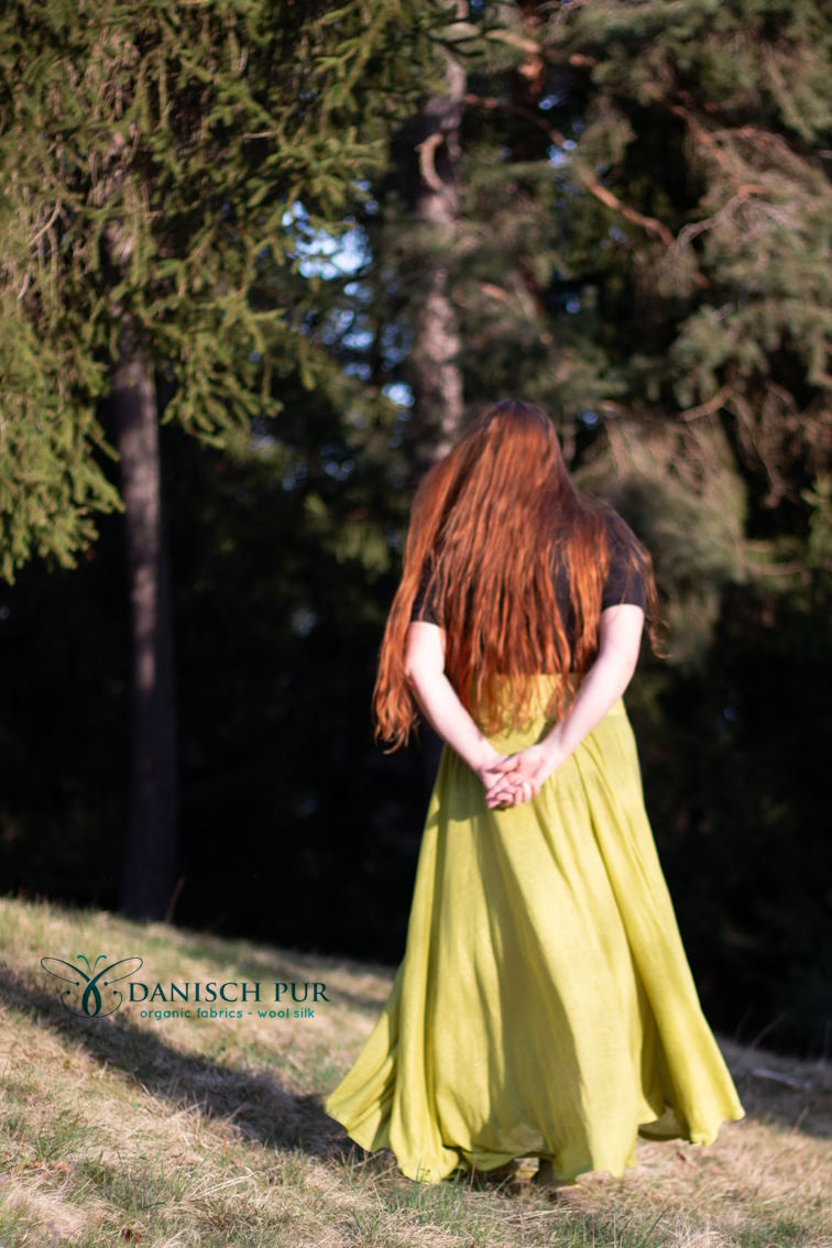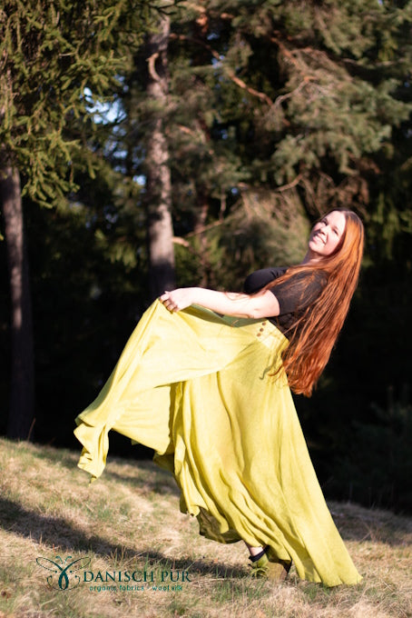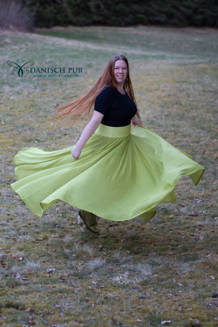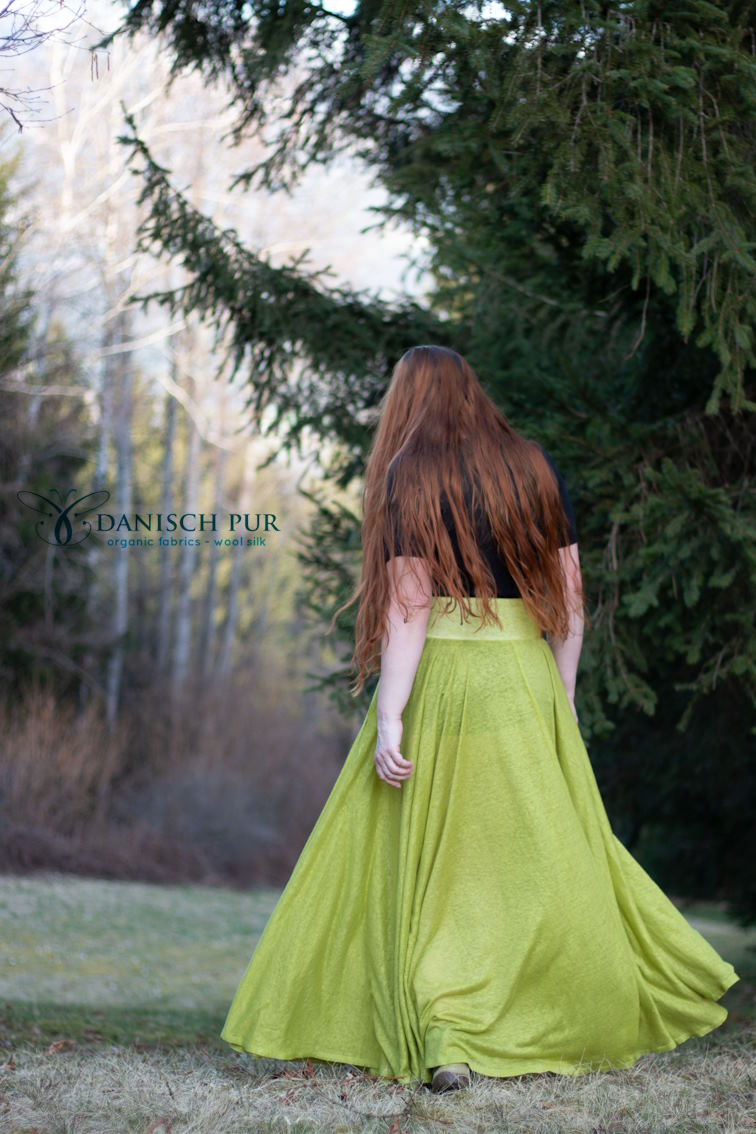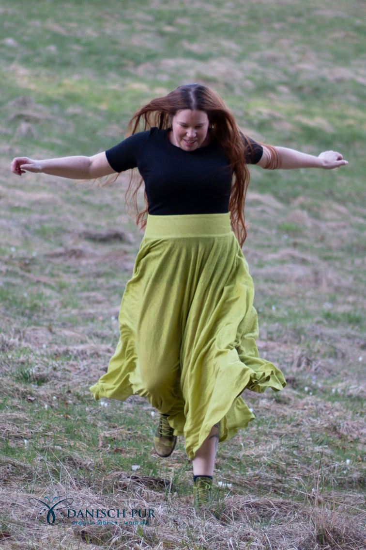 Here you can see a great self-constructed twirling skirt made from several layers of lime hemp jersey.
