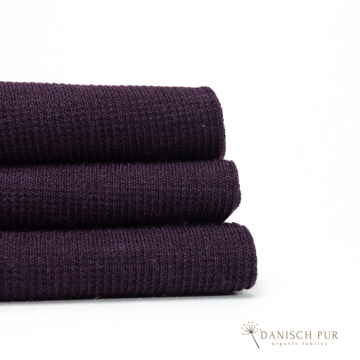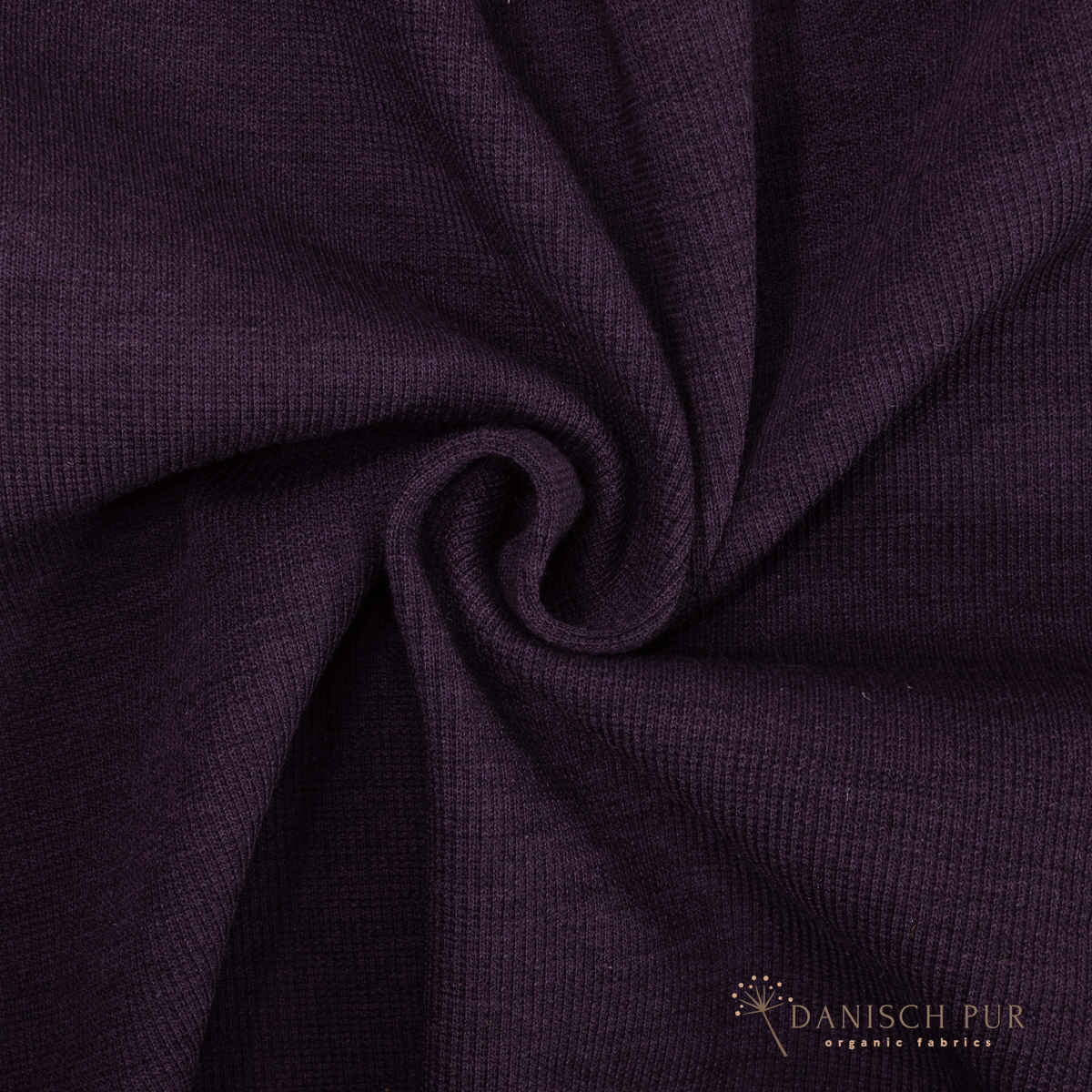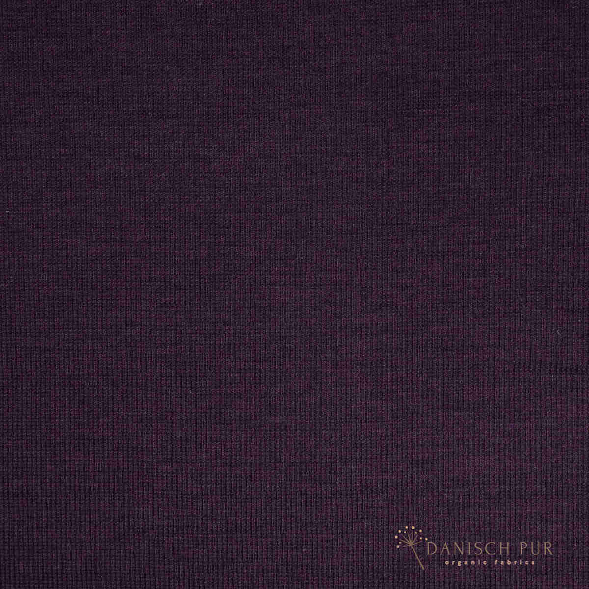 Bio Wollbündchen Aubergine meliert (kbt, mulesingfrei) Rippe im Schlauch