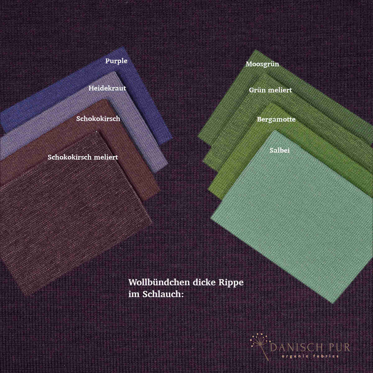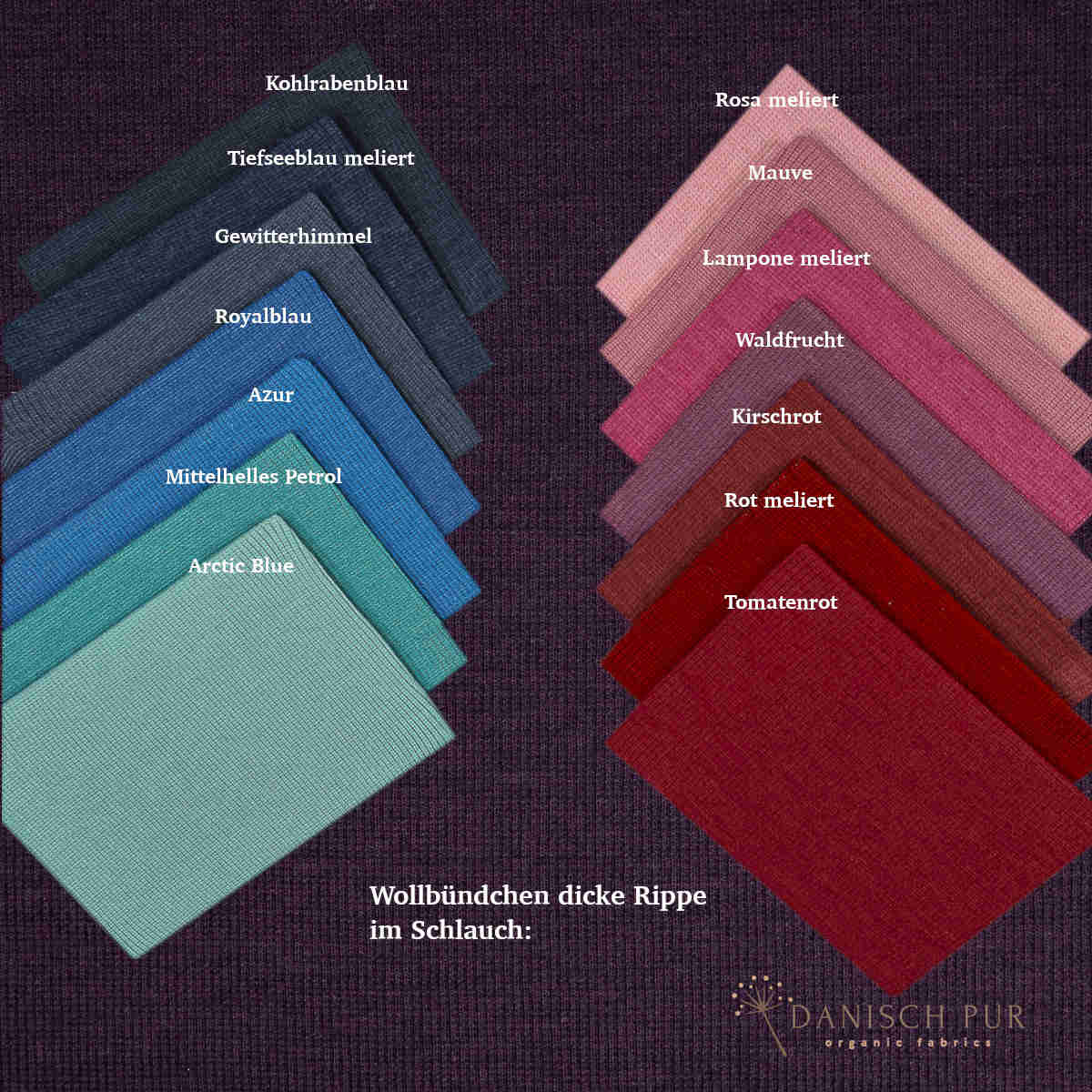 Wollbündchen eignen sich hervorragend als Abschluss für alle Wollkleidungsstücke. Da Wolle kein Wasser zieht, ist es gerade für Outdoor- und Babykleidung wichtig, dass keine Abschlüsse mit Baumwollbündchen versetzt werden. Diese werden nämlich nass und kalt und müssen zudem stärker gepflegt (=öfter gewaschen) werden als der Rest des Wollkleidungsstücks. Ein Wollbündchen hingegen ist ebenso pflegearm wie der Rest des Wollkleidungsstücks. Es hält auch bei Nässe noch warm, fühlt sich bei leichter Feuchtigkeit nicht klamm an und kann bei Verschmutzung einfach ausgebürstet werden. Bei schlechten Gerüchen (Rauch, Schweiß, Urinspuren) reicht auch beim Wollbündchen einfach ein Auslüften. Unsere Bio Wollbündchen (kbt, 97% Schurwolle) sind für die langanhaltende Elastizität und Langlebigkeit mit 3% Elasthan versetzt.