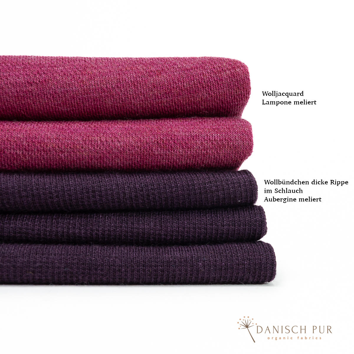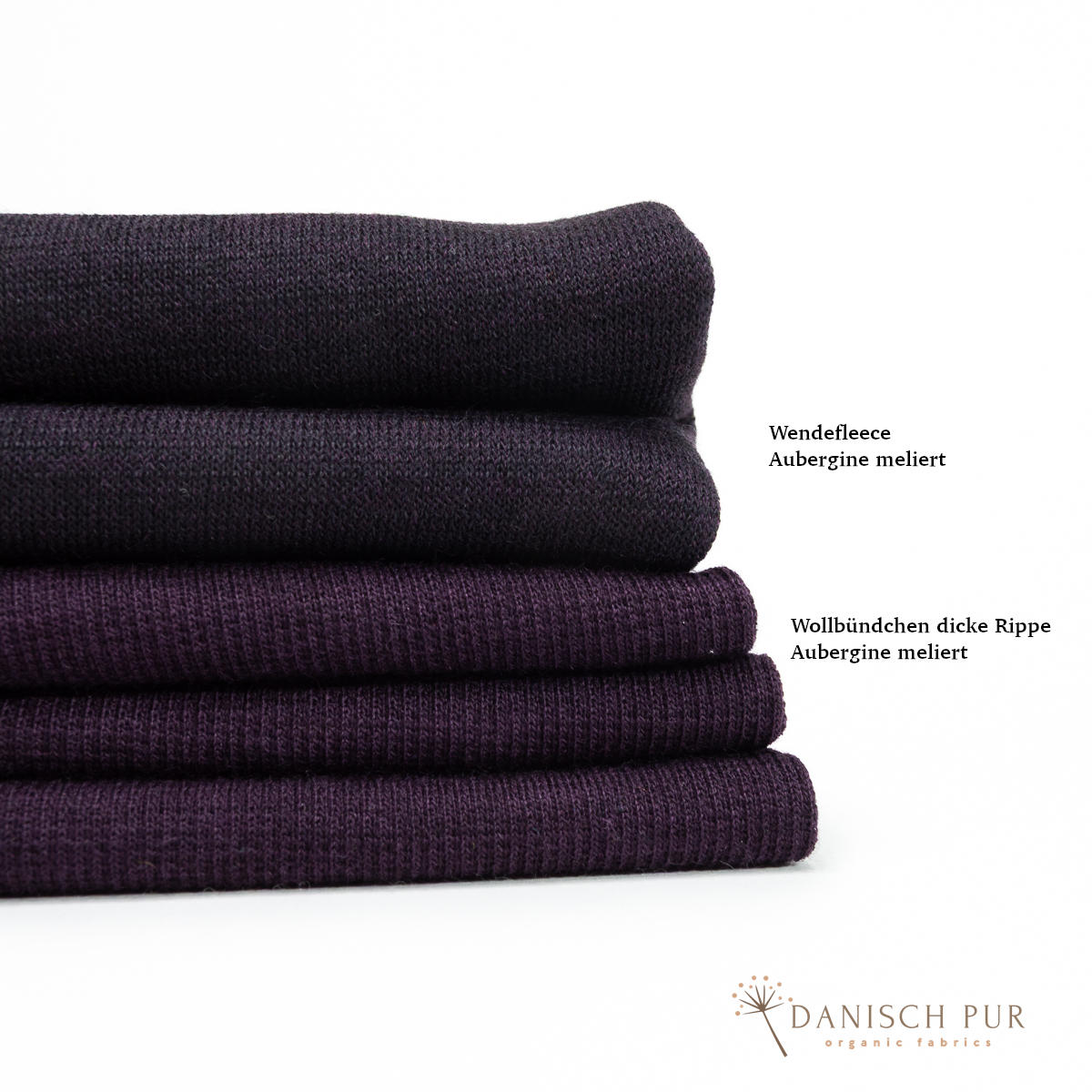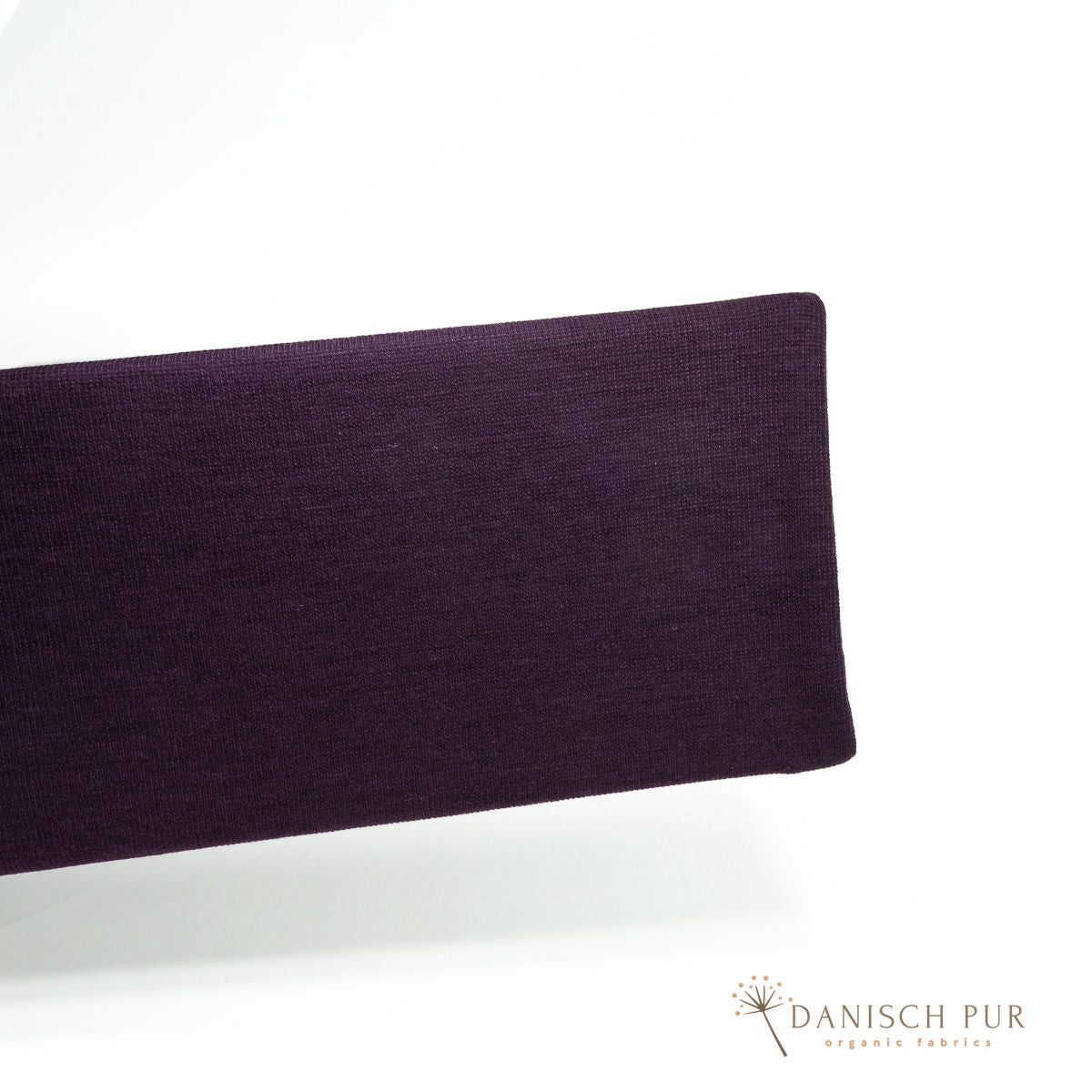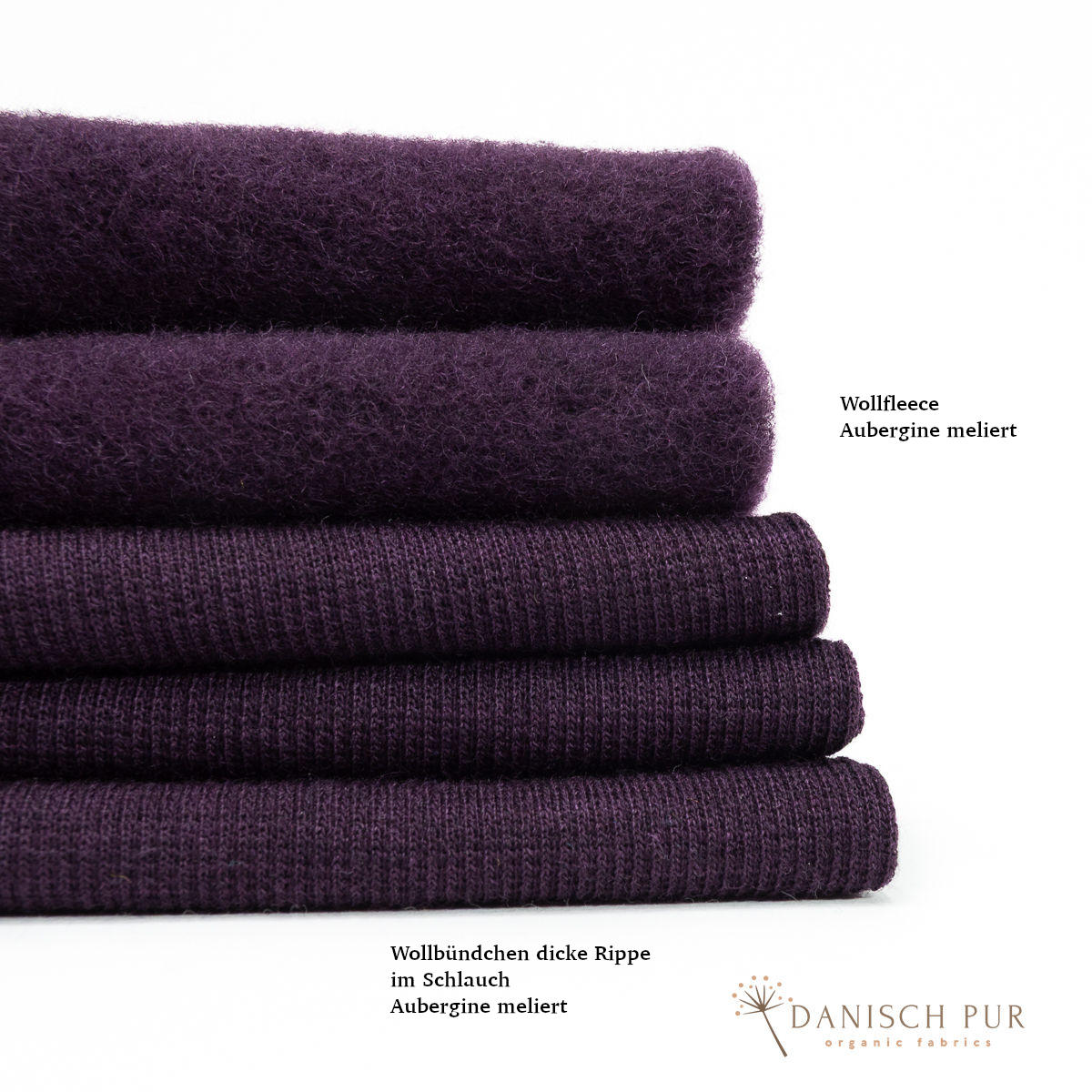 Hier erhaltet ihr das Wollbündchen in der Farbe Aubergine. Es ist aus dem gleichen Garn gestrickt wie der Wollfleece in Aubergine und passt daher perfekt zum Fleece.