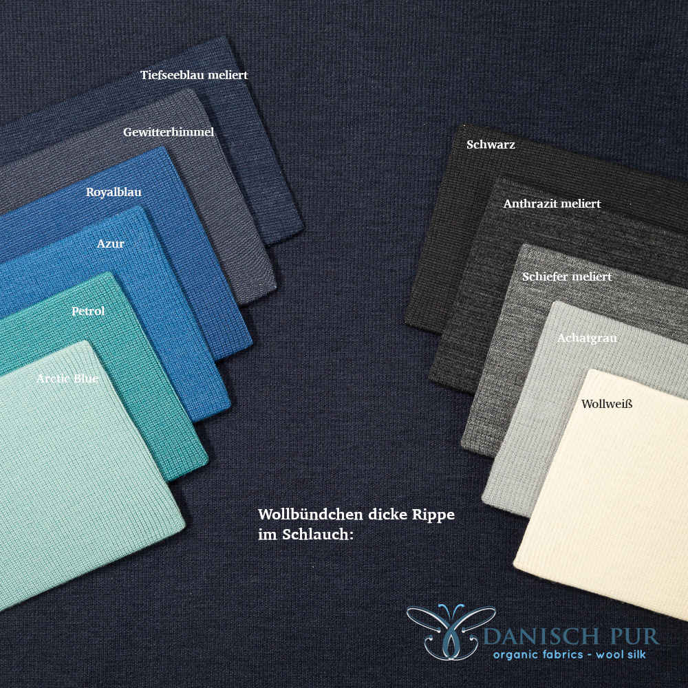 Die Bündchen sind für eher schwere Stoffe hergestellt wie Wollfleece, Wollfrottee, Wollwalk und Loden, aber auch Wolljerseys mit höherem Flächengewicht. Viele nutzen die Bündchen auch für andere Dinge, wie Bleistiftröcke, enganliegende Oberteile oder Ähnliches. Der Fantasie von euch sind wahrlich keine Grenzen gesetzt, wie wir immer wieder erfreut feststellen können!