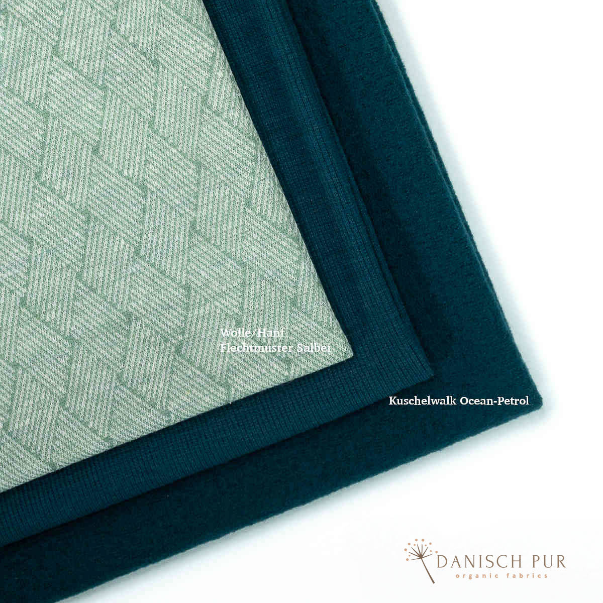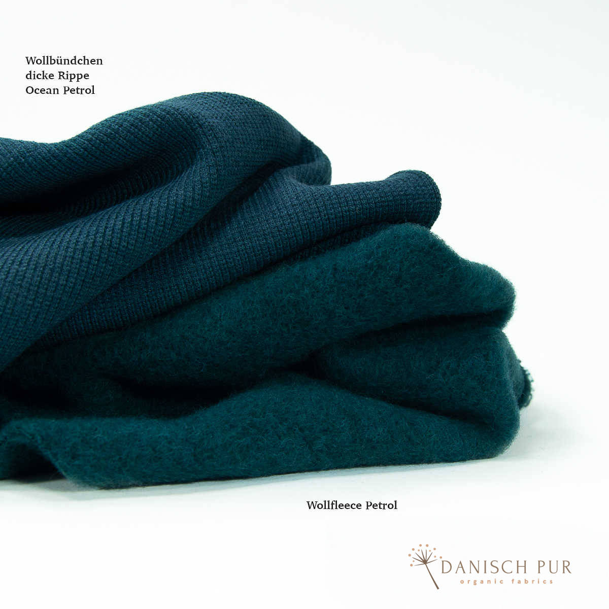 Da Viele von euch fragten, haben wir auch ein Vergleichsbild mit dem Wollfleece in Petrol gemacht - der Farbname ist bewußt anders gewählt, da auch die Farbe leicht anders ist - bitte beachten :-)