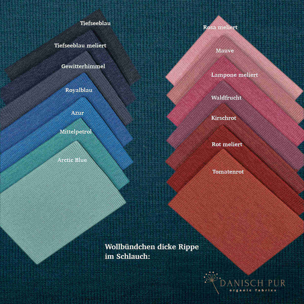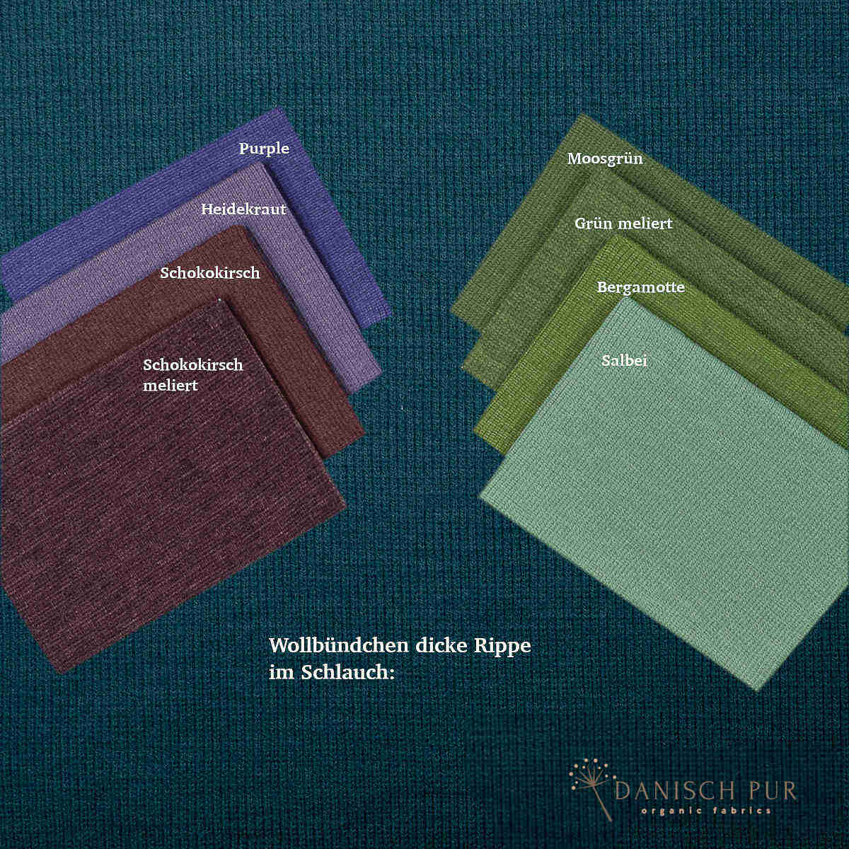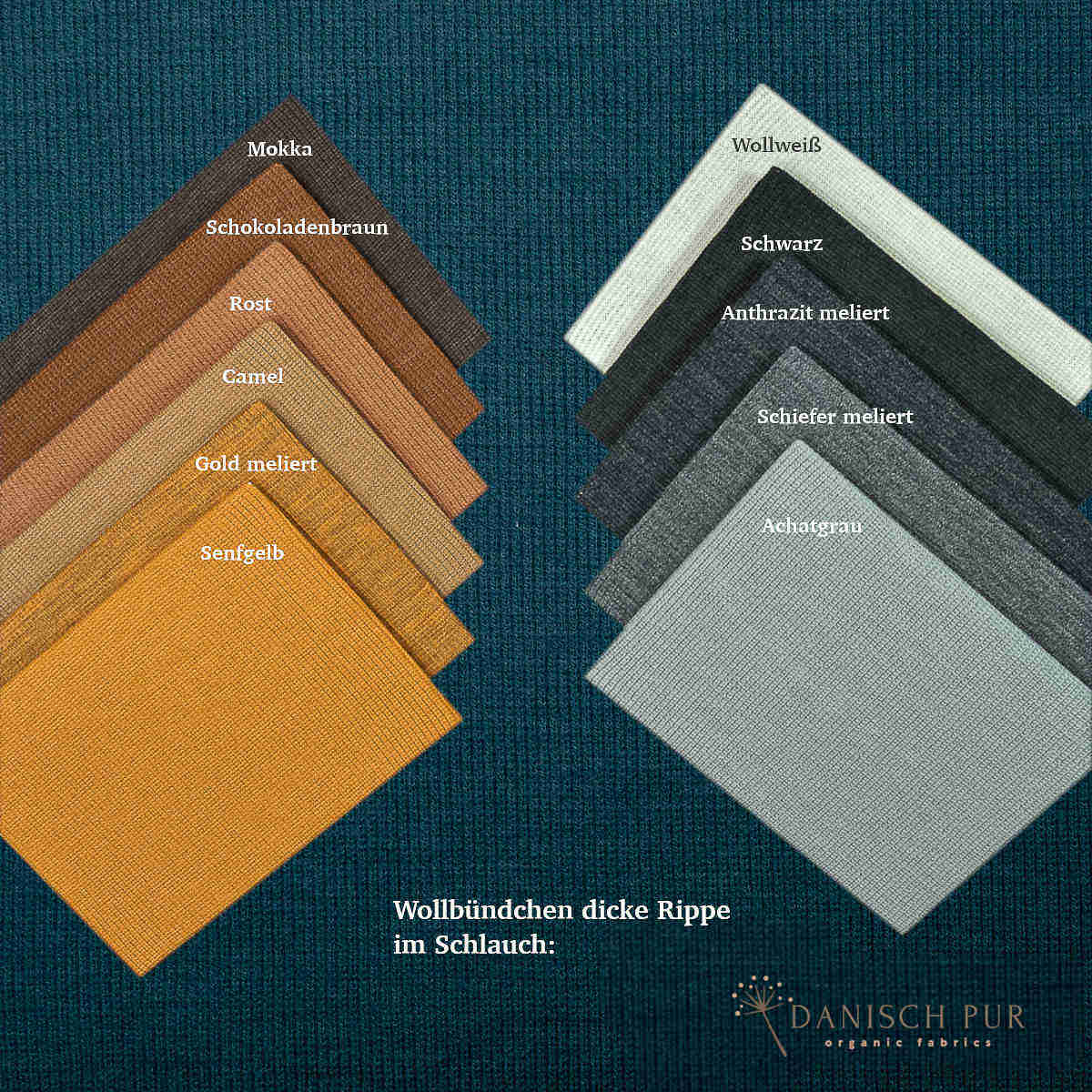 Wollbündchen eignen sich hervorragend als Abschluss für alle Wollkleidungsstücke. Da Wolle kein Wasser zieht, ist es gerade für Outdoor- und Babykleidung wichtig, dass keine Abschlüsse mit Baumwollbündchen versetzt werden. Diese werden nämlich nass und kalt und müssen zudem stärker gepflegt (=öfter gewaschen) werden als der Rest des Wollkleidungsstücks. Ein Wollbündchen hingegen ist ebenso pflegearm wie der Rest des Wollkleidungsstücks. Es hält auch bei Nässe noch warm, fühlt sich bei leichter Feuchtigkeit nicht klamm an und kann bei Verschmutzung einfach ausgebürstet werden. Bei schlechten Gerüchen (Rauch, Schweiß, Urinspuren) reicht auch beim Wollbündchen einfach ein Auslüften. Unsere Bio Wollbündchen (kbt, 97% Schurwolle) sind für die langanhaltende Elastizität und Langlebigkeit mit 3% Elasthan versetzt.