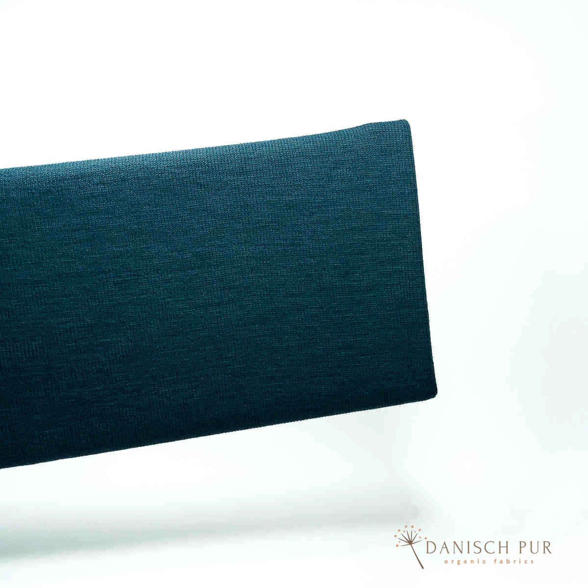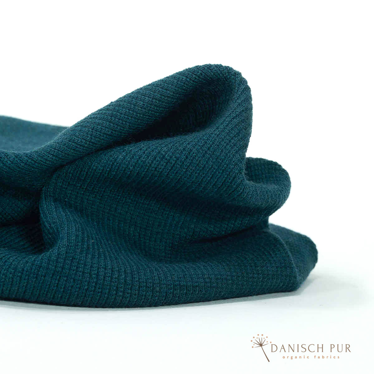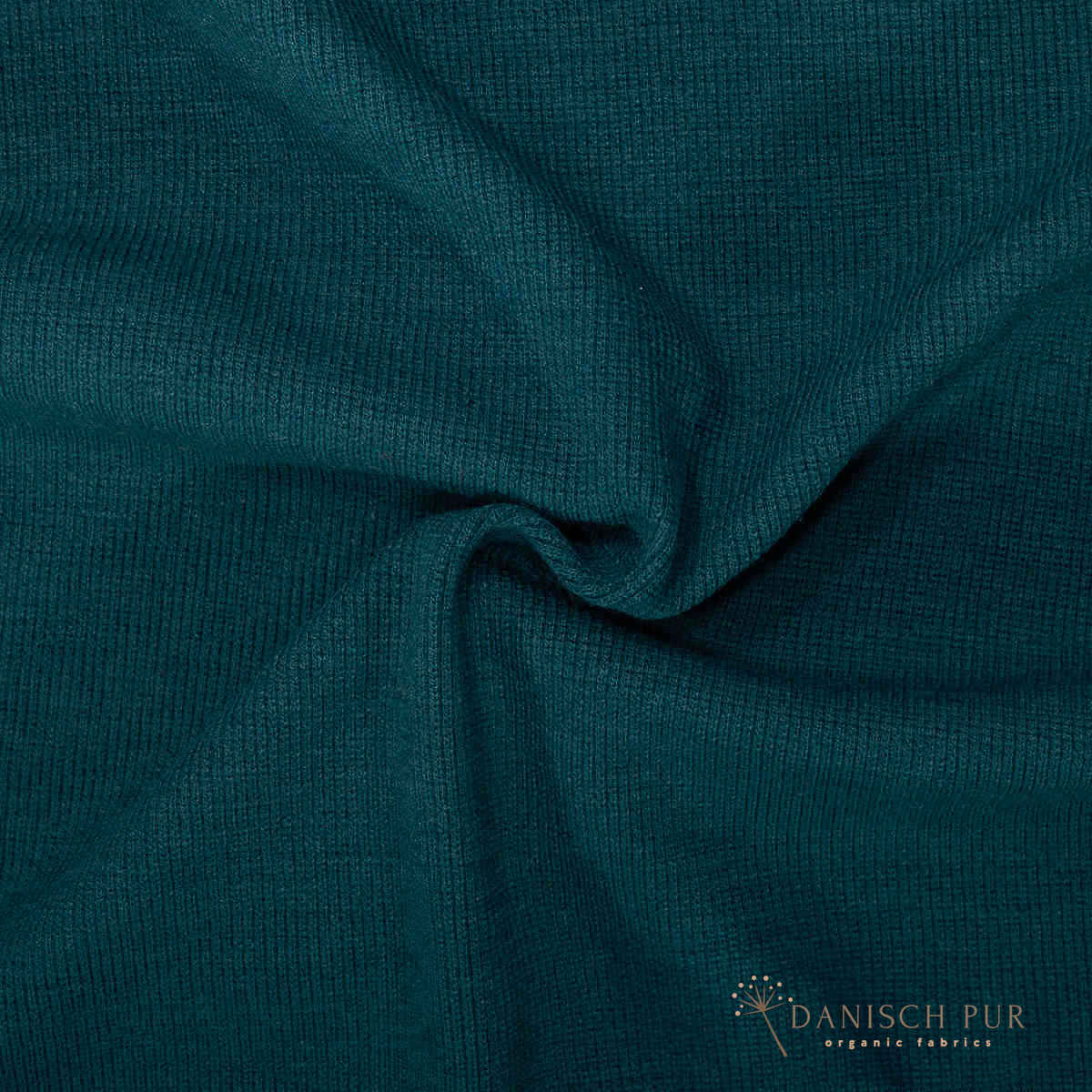 Bio Wollbündchen Ocean-Petrol (kbt, mulesingfrei) Rippe im Schlauch