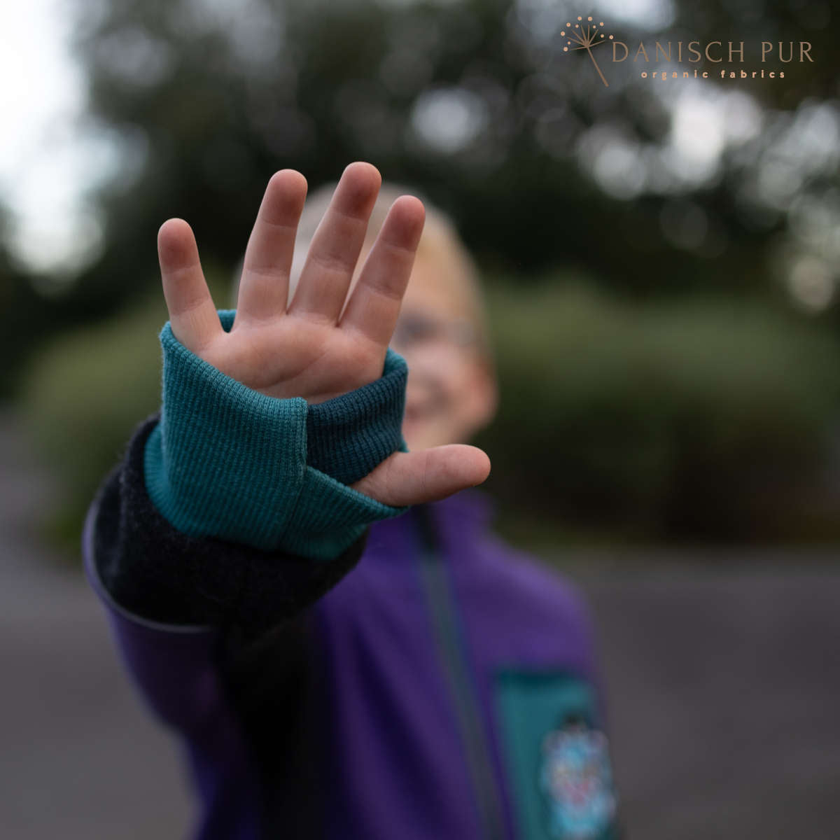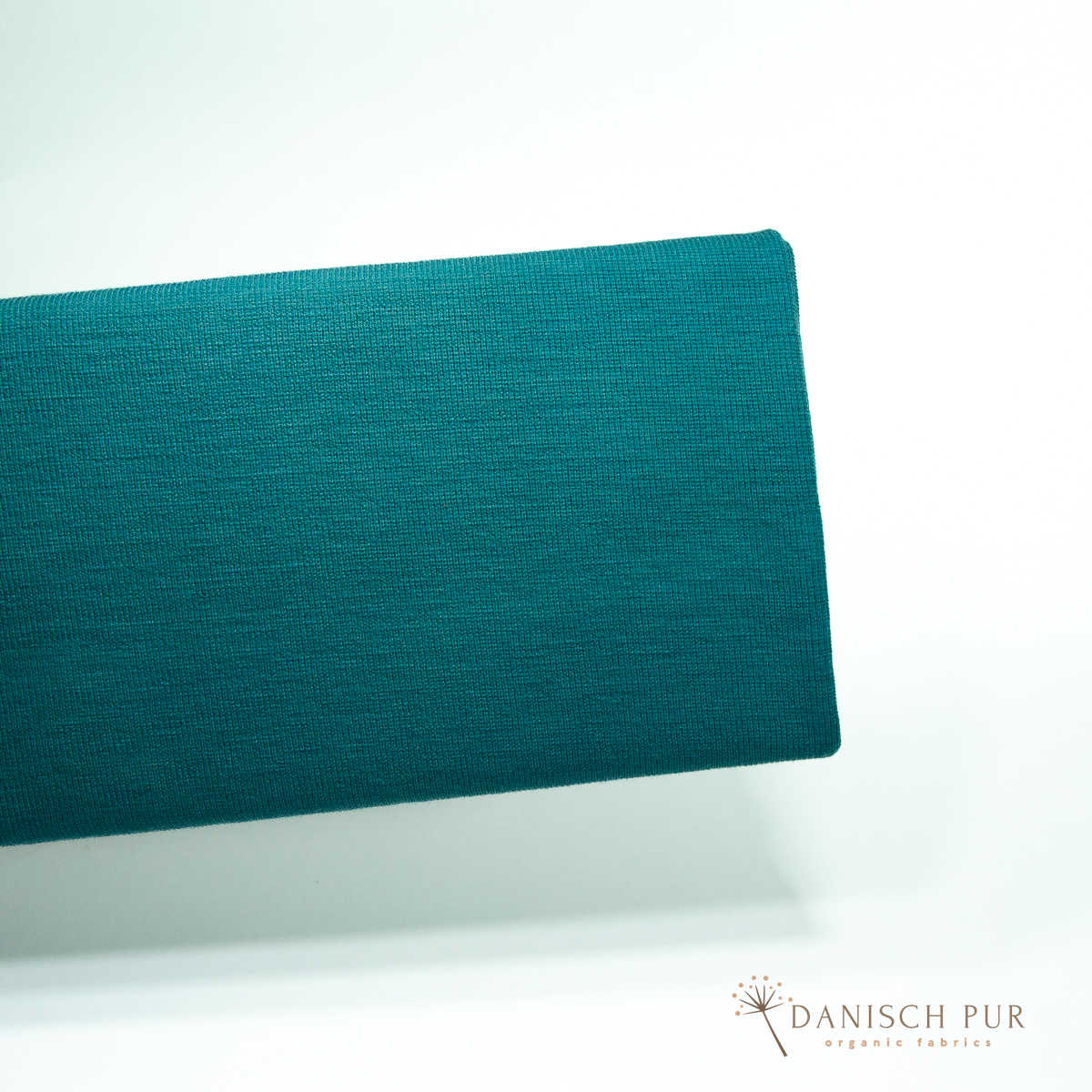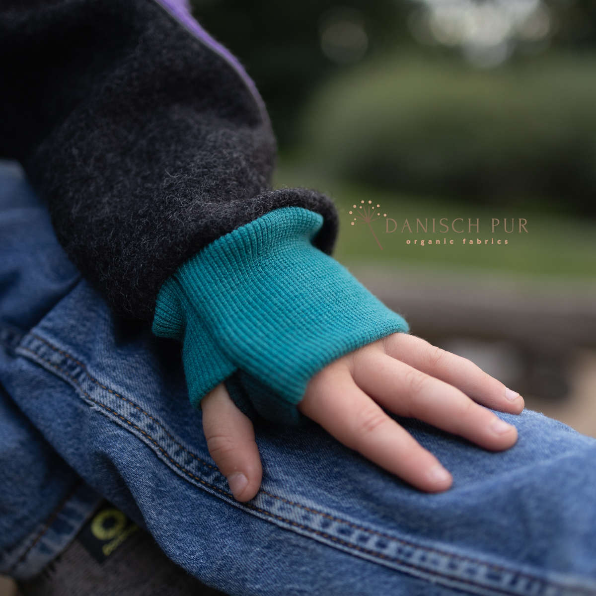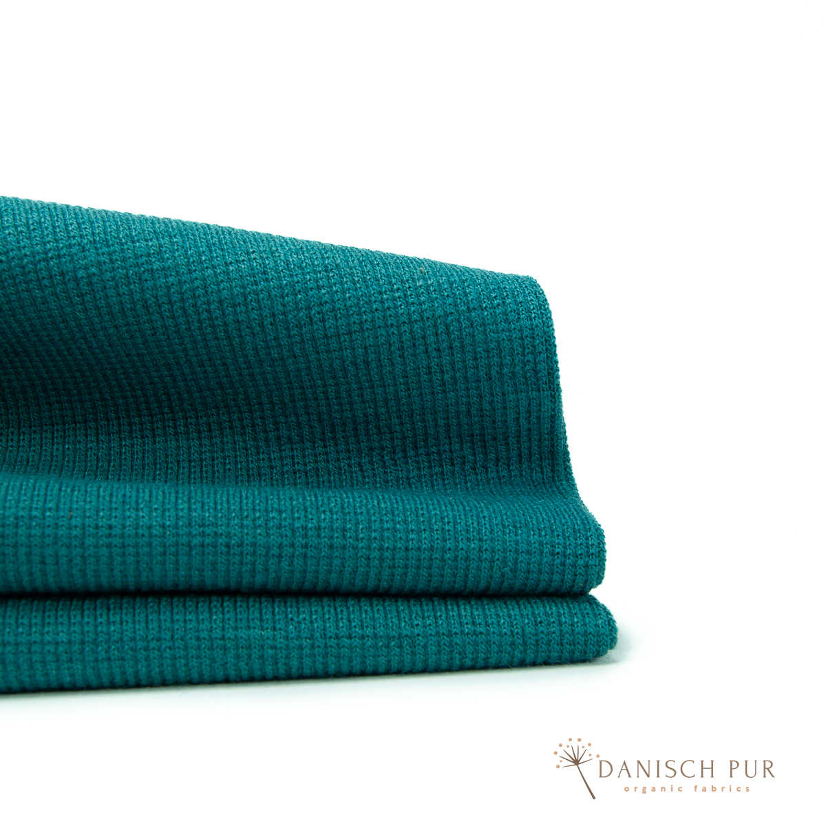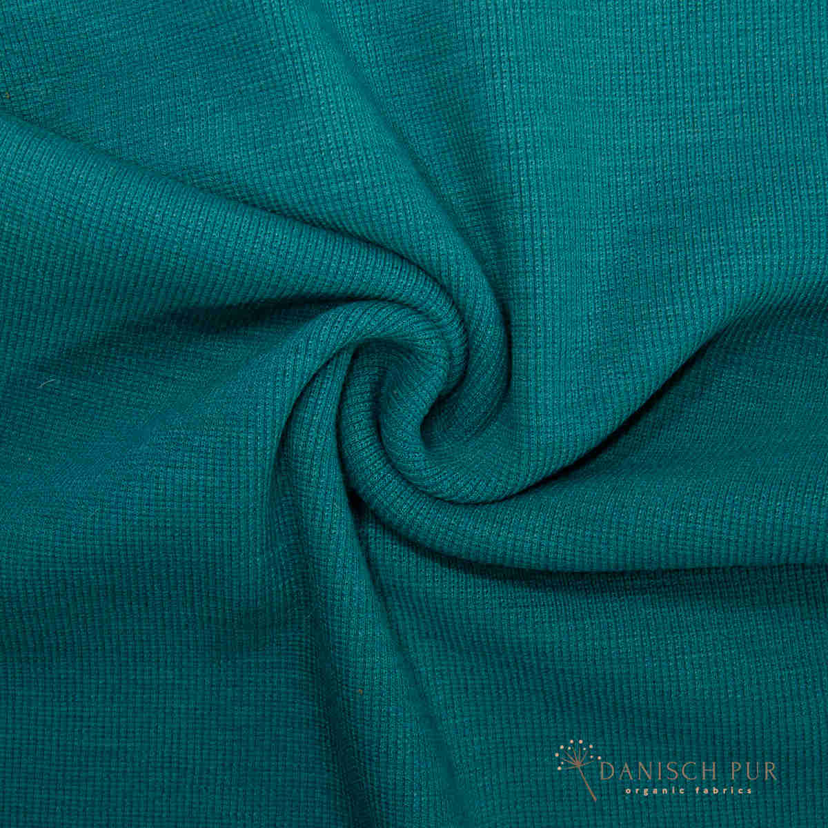 Bio Wollbündchen JadePetrol (kbt, mulesingfrei) Rippe im Schlauch