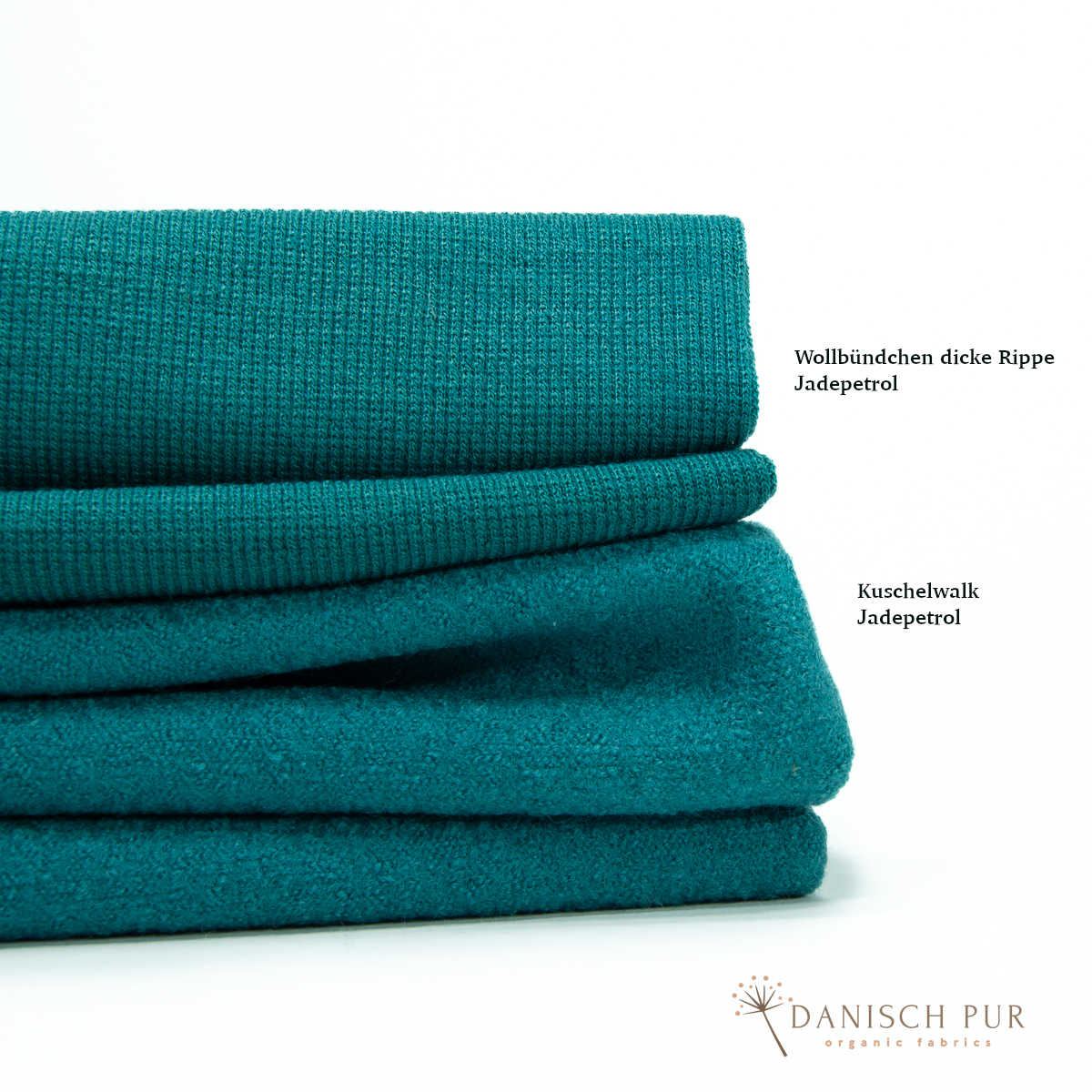 Hier erhaltet ihr das Wollbündchen in der Farbe Jadepetrol. Der Farbton wurde dem Kuschelwalk der Farbe Jadepetrol nachgefärbt. Das hat zu hervorragend geklappt.