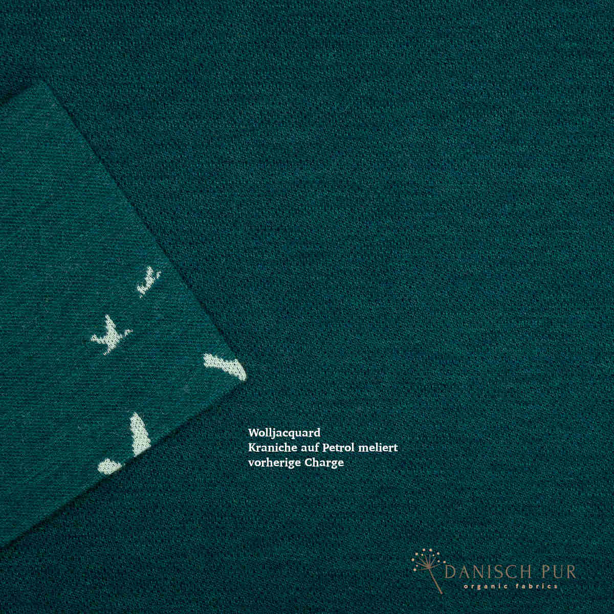 Bio Wolljersey Jacquard Uni Petrol meliert (100% Schurwolle, Merino, kbt, mulesingfrei)