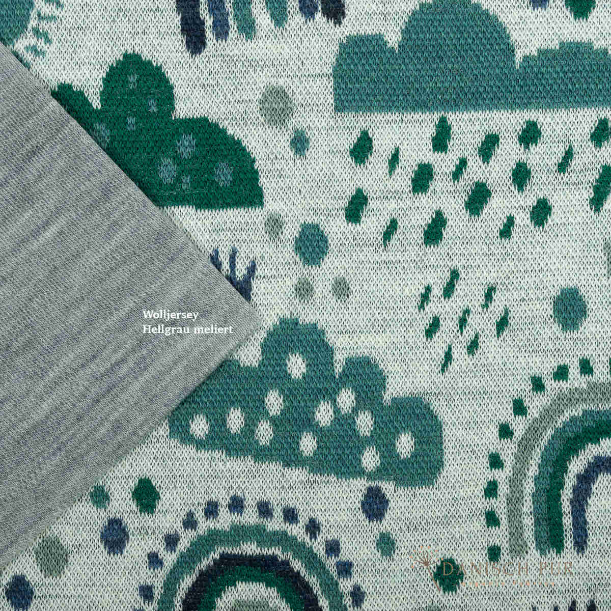 Bio Wolljersey Jacquard Wolken Lagoblau-Petrol (Merino, kbt, mulesingfrei)