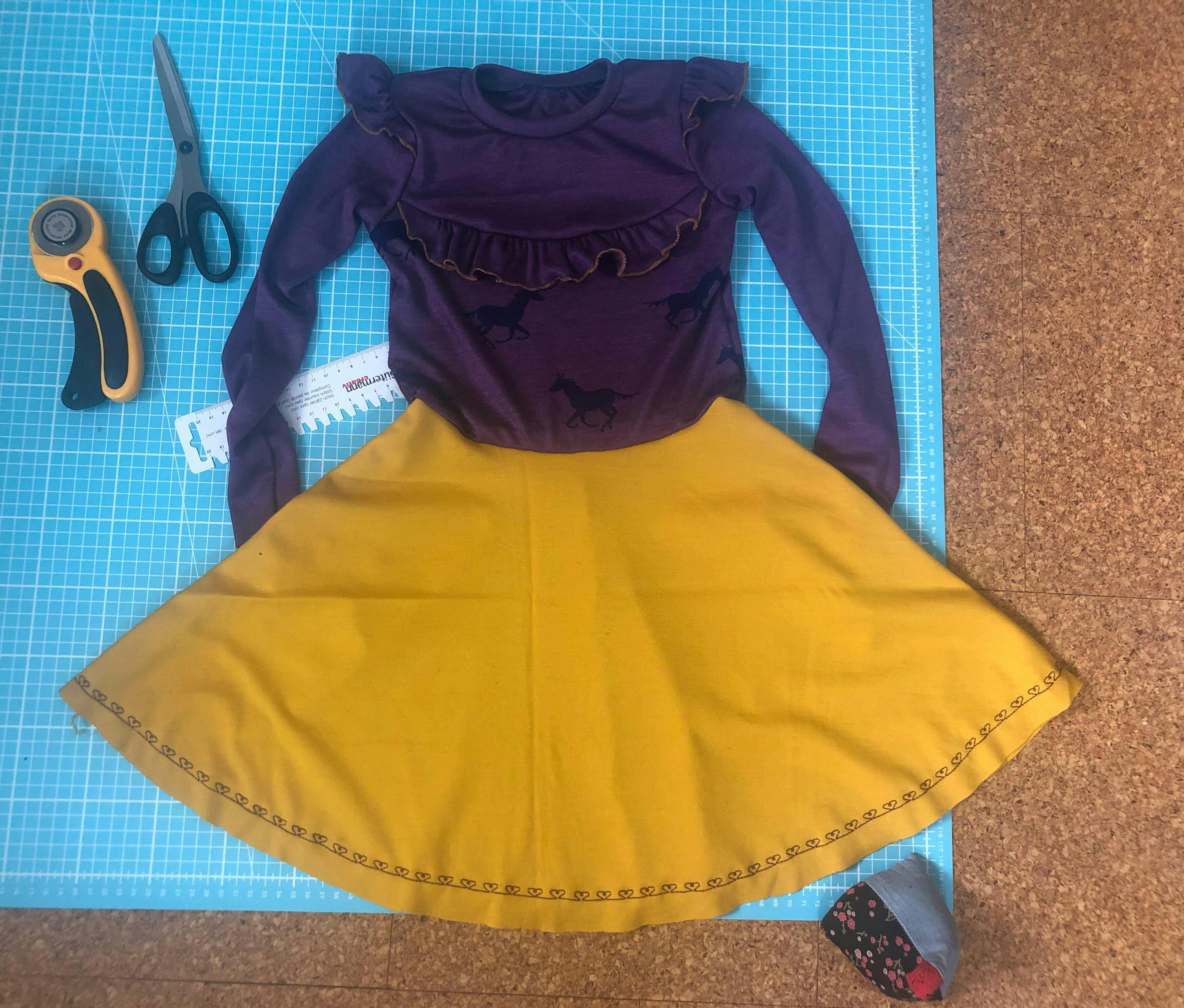 Zum sonnenblumengelben Wolljersey als Kombination eignen sich sämtlichen Wolljersey- und Wolle/Seide Stoffe im Shop. Die safrangelben Wolljerseyringel sind vom Gelbton leicht dunkler, passen aber ebenfalls gut zum sonnenblumengelb. Wenn ein sehr festes Bündchen gewünscht ist, z.b. für ein Bauchbündchen einer Hose, können auch gut die etwas gröberen Wollbündchen Rippe im Schlauch verwendet werden.