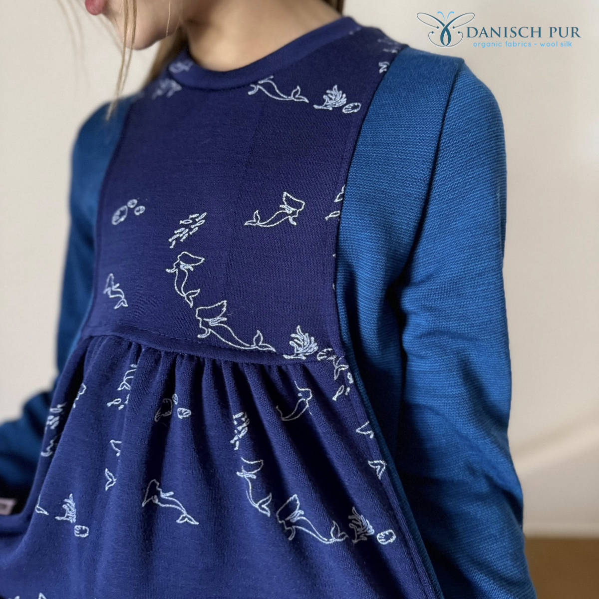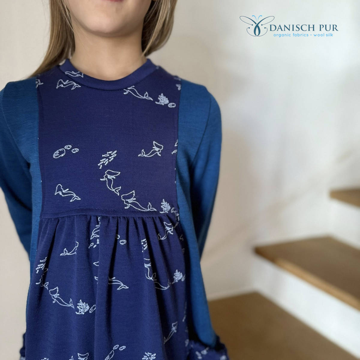 Das zweite Nähbeispiel wurde genäht von Stephanie und zeigt die Kombination von Lago-Cino mit dem Meerjungfrauen Wolljersey, vernäht zu einem "Kleyd" von Seebach-Design (Schnittmuster leider nicht mehr erhältlich).