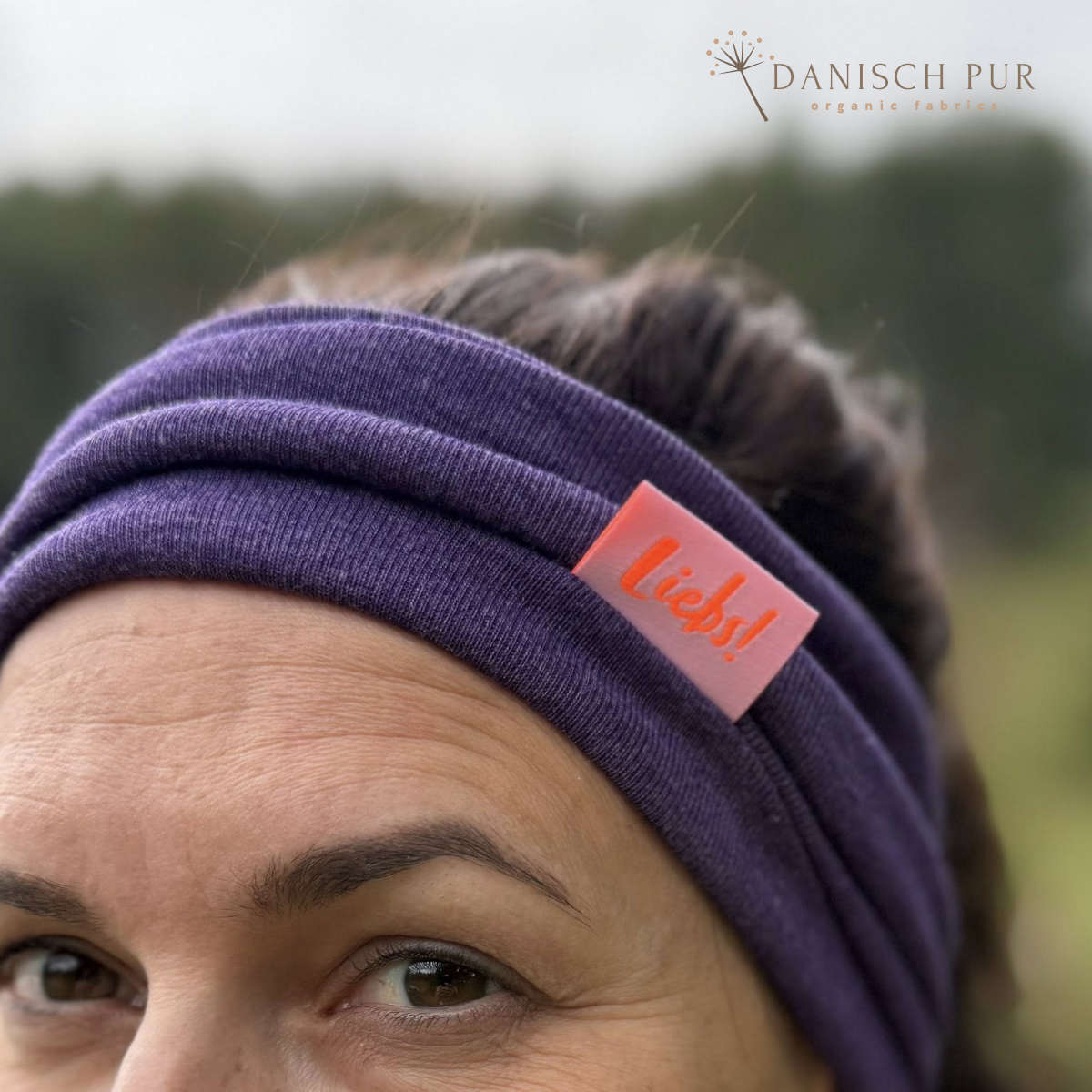 Beim Kleid wurden zu dem Uni die passenden Amethyst Ringel kombiniert und gemeinsam zu einem Supershirt Kleid von Lila-wie-Liebe vernäht. Dabei wurden die Streifen bewusst gegen den Fadenlauf, senkrecht in Szene gesetzt.