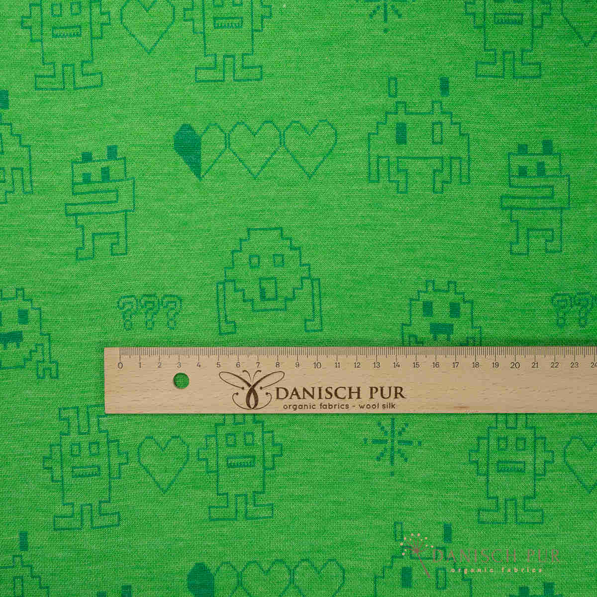 Coupon 90 cm Bio Wolljersey Jacquard Monster auf Zitronengrün (Merino, kbt, mulesingfrei)