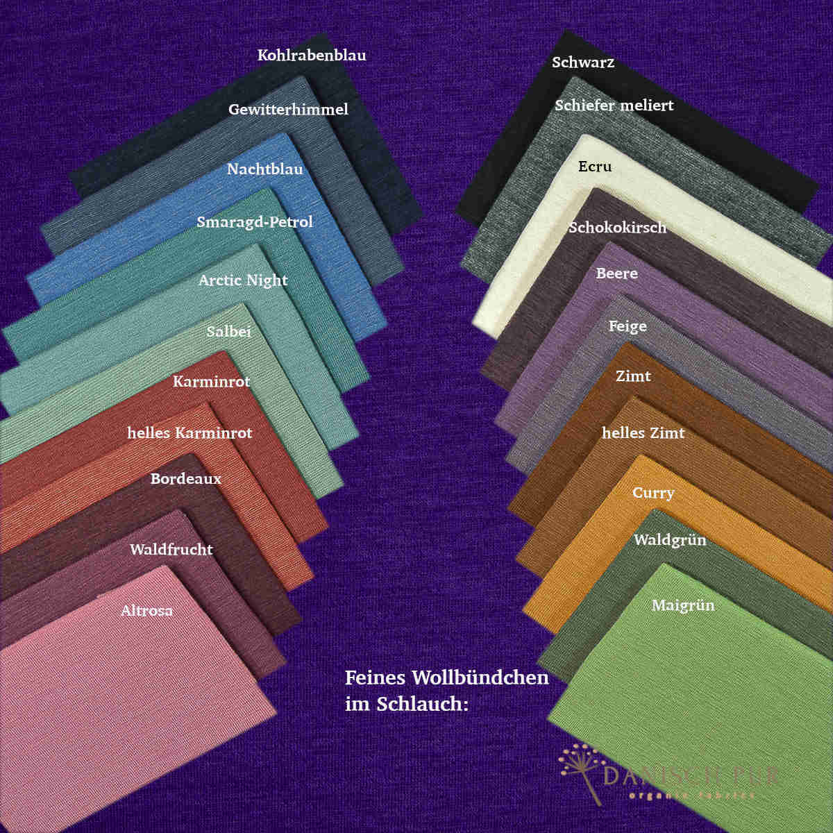 Gut zum Kombinieren eignen sich hier unsere anderen Wollfrottees, aber auch dickere Wolljerseys oder Wolljacquards.