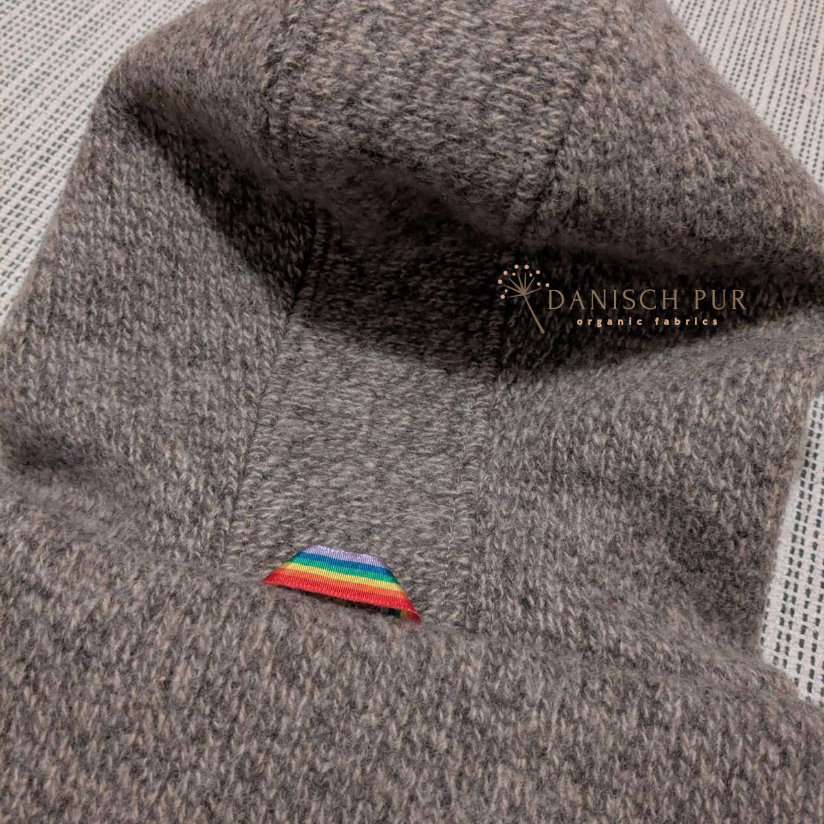 Natürlich kann er gut gefüttert werden, z.B. in einer Kapuze mit Wolljersey oder WolleSeide.