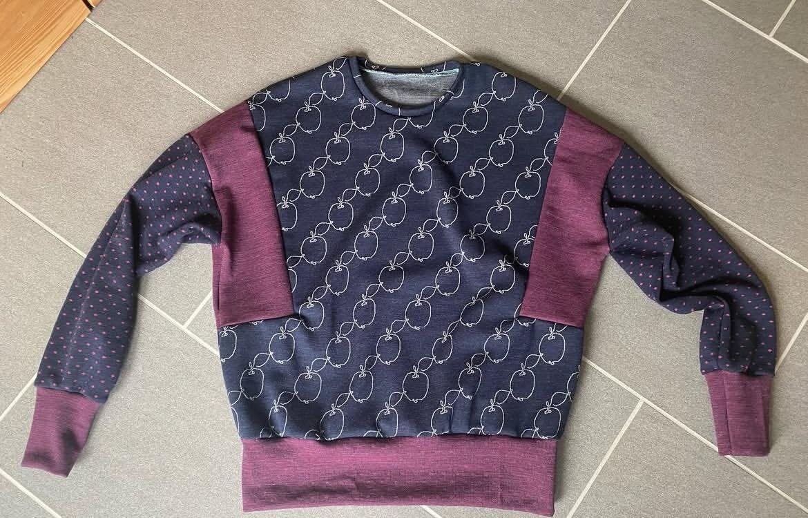 Wir empfehlen das Bündchen für schwerere Stoffe für diesen Stoff oder die Verwendung eines Wolljerseys.