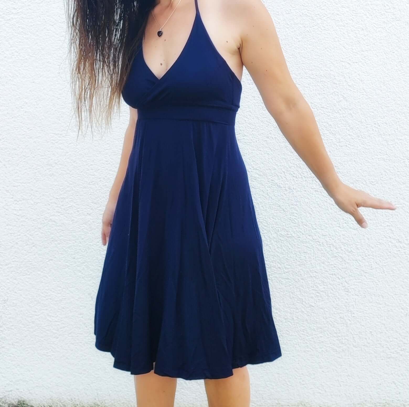 Geschmäcker sind verschieden - dieser Schnitt hat für jeden was dabei. Man kann zwischen einer rückenfreien Neckholdervariante, breiten Trägern mit halb geschlossenem Rücken, Flatterärmeln, sowie kurzen, 3/4 –langen oder ganz langen Ärmel wählen. Ebenso lässt sich das Kleid hervorragend auf eine Shirtlänge kürzen.