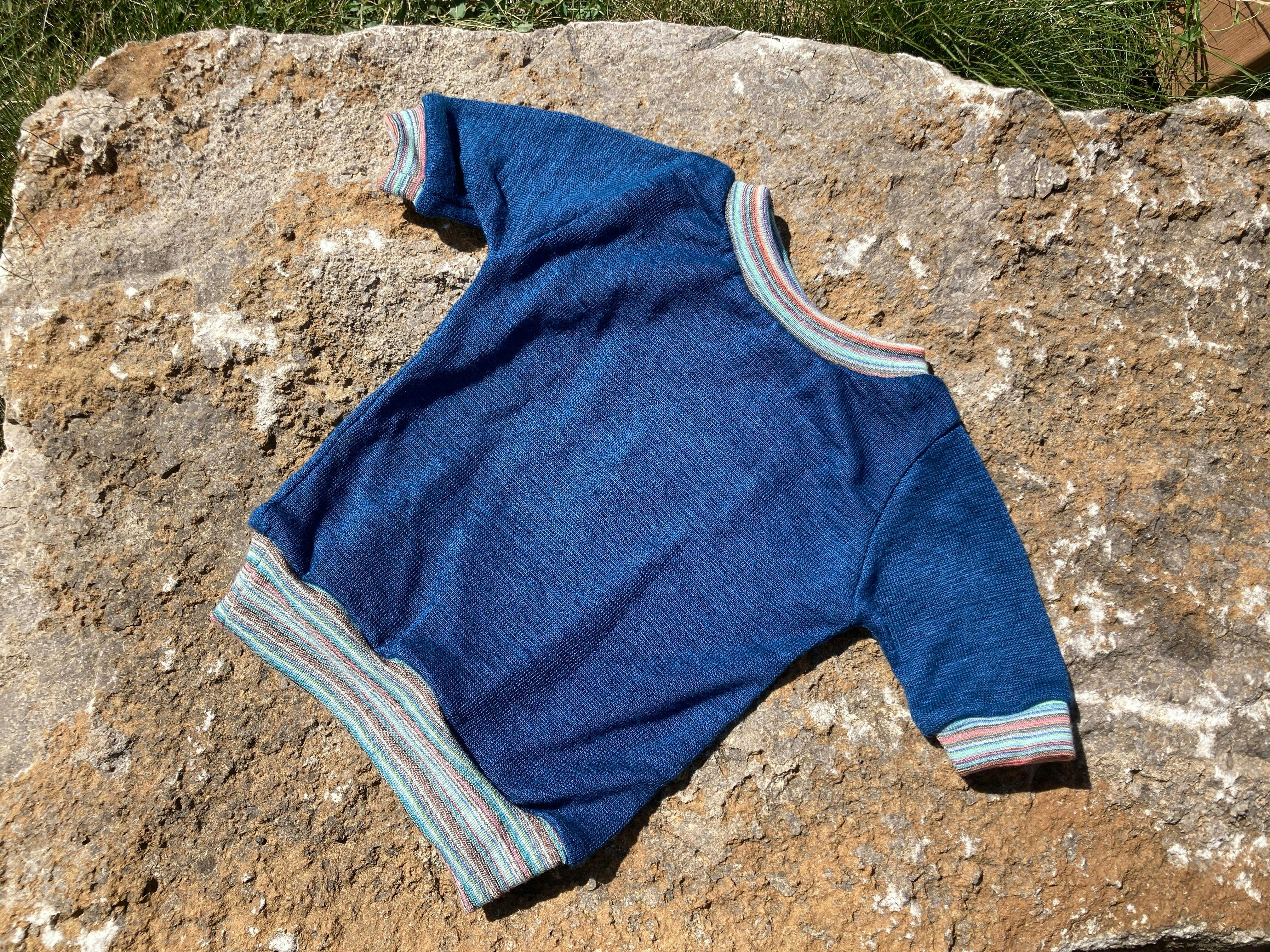 Hanfjersey ist ein auf den ersten Griff eher fester und im Vergleich zu WolleSeide auch viel rauerer Stoff, er wird mit dem Tragen aber immer weicher bis er irgendwann butterzart ist.
