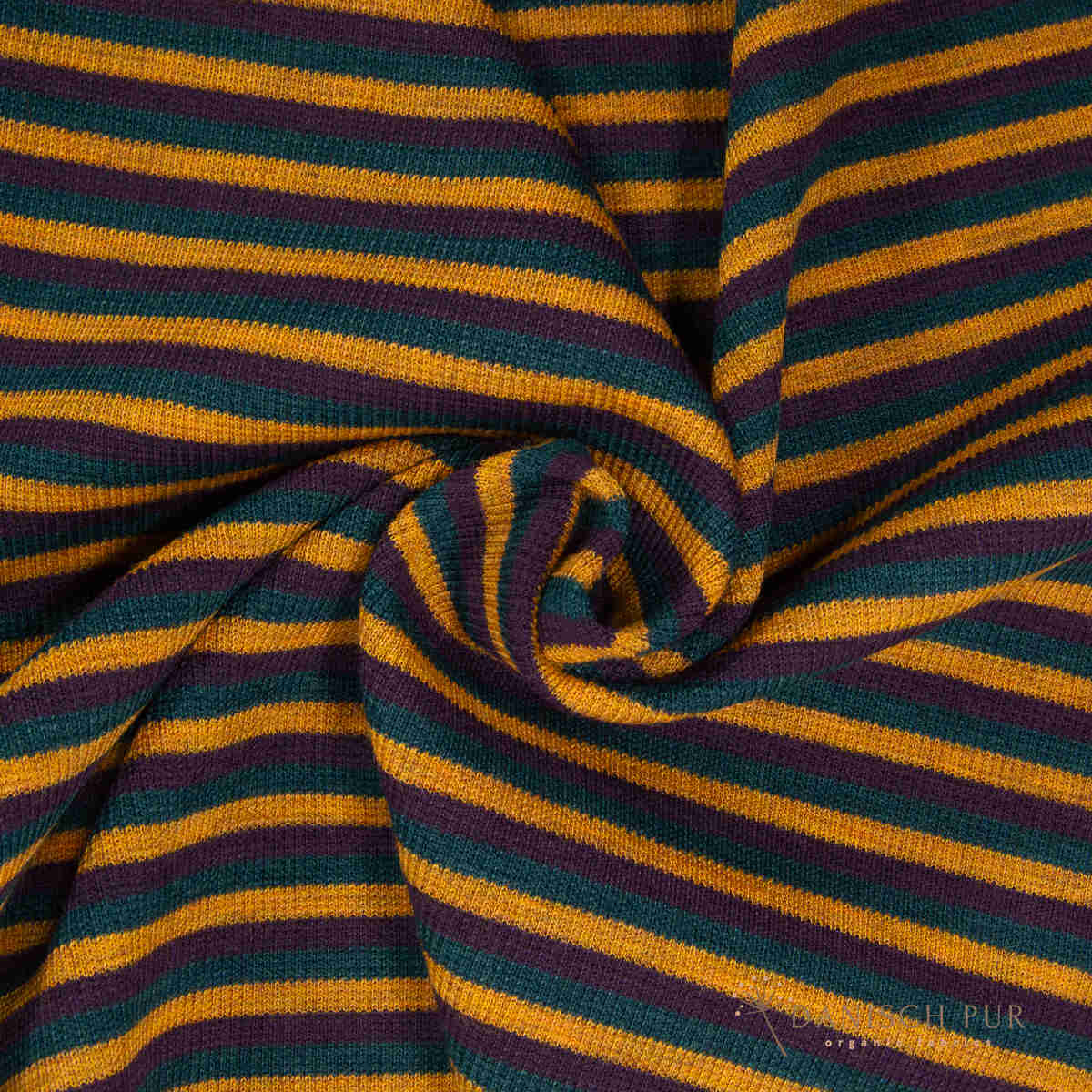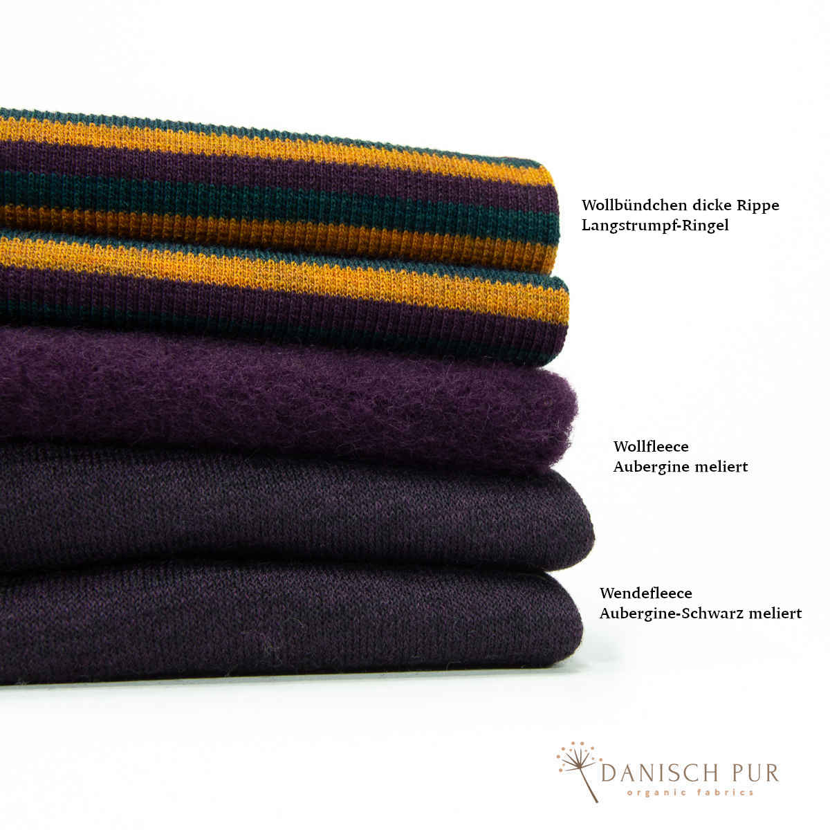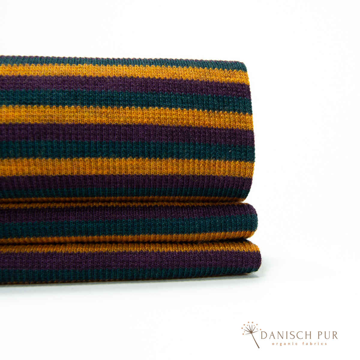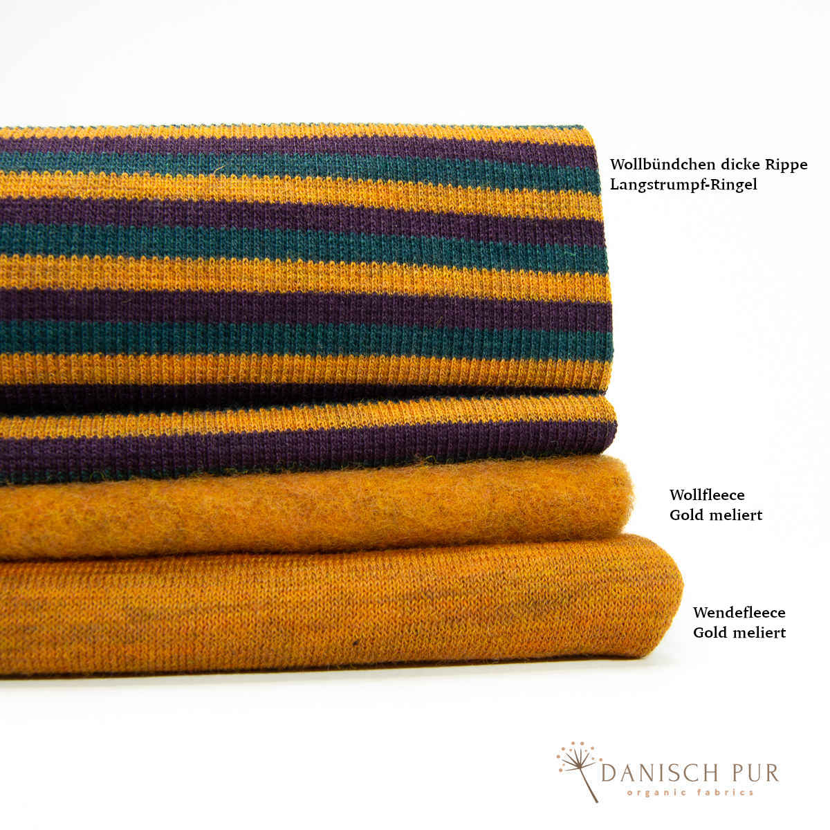 Farblich passt dieses Wollbündchen perfekt zu den gleichnamigen Wollfleece-Stoffen Gold und Aubergine.