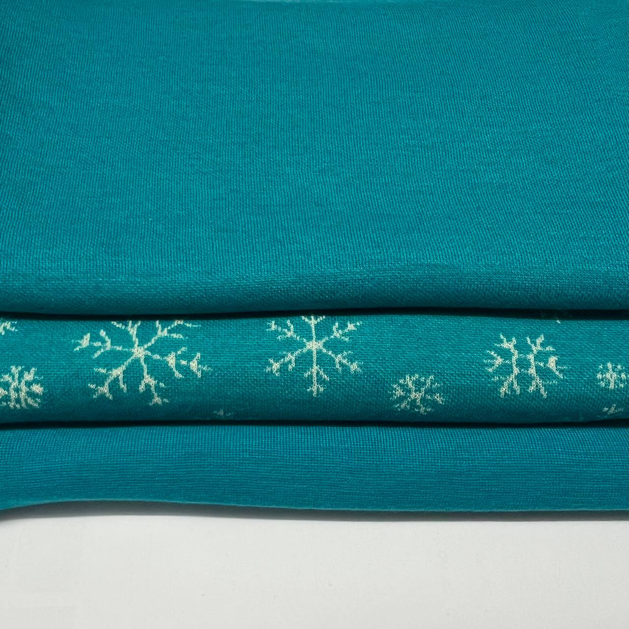 Schneeflocken Paket (40 cm sehr feines Bündchen Türkis, 80 cm Schneeflocken Türkis, 60 cm uni Türkis)