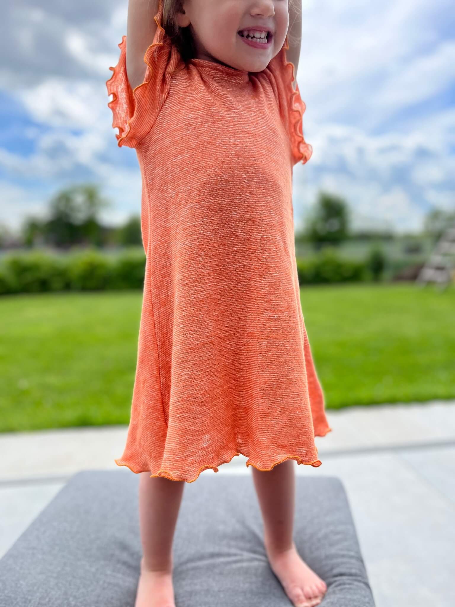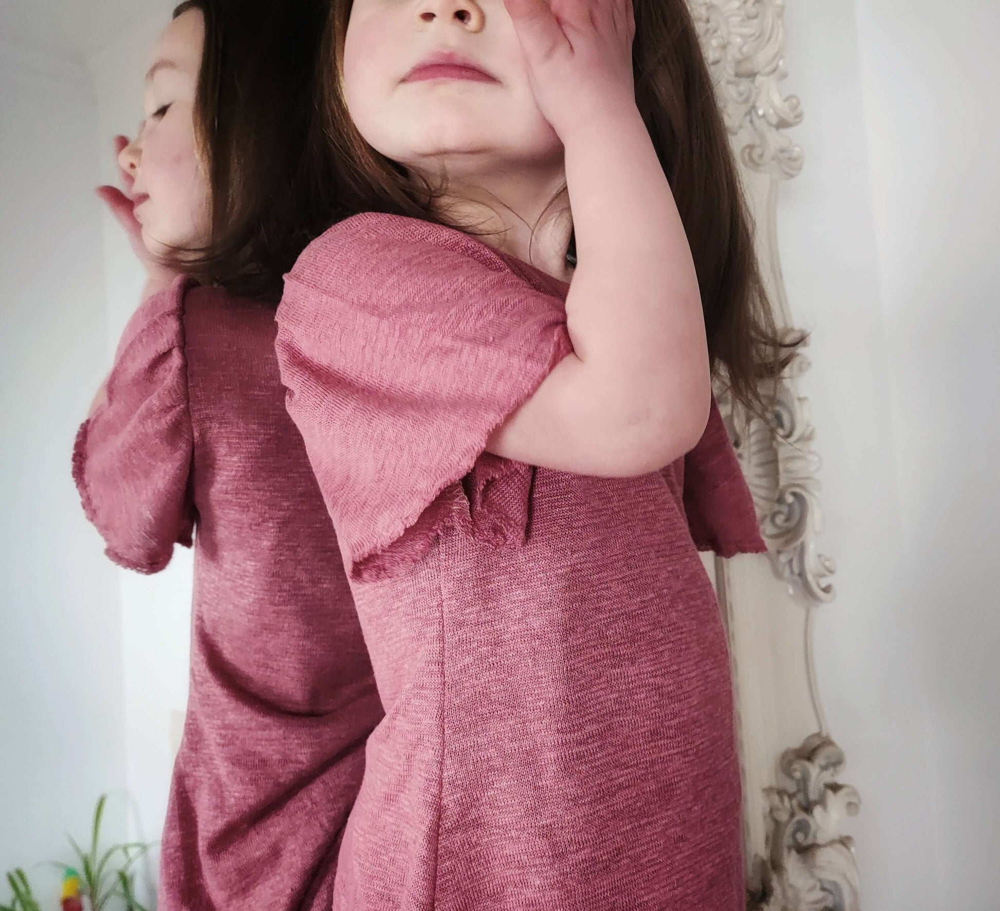 Das Schnittmuster „Summer Wind“ ist ein luftiges Kleid, das auf Wolle-Seide oder ähnlich dehnbare Stoffe ausgelegt ist. Es gibt fünf verschieden Ärmelvarianten, neben den 7/8, den 3/4 und den kurzen Ärmeln sind auch die für den Sommer besonders beliebten Flatter- und Flügelärmel enthalten.