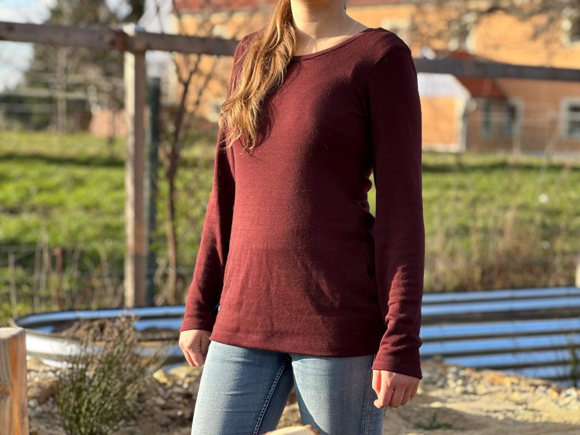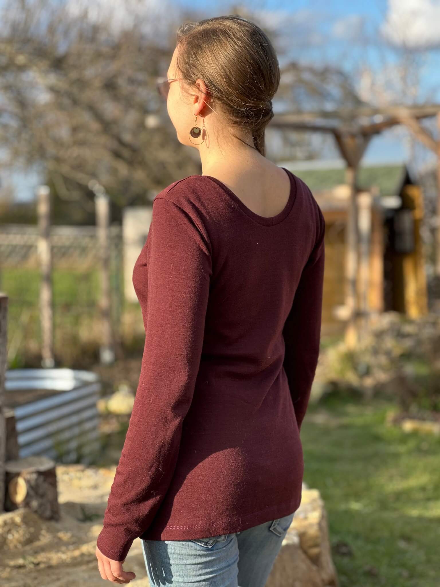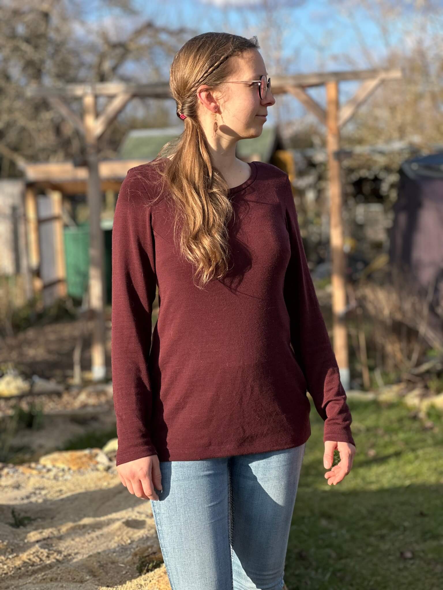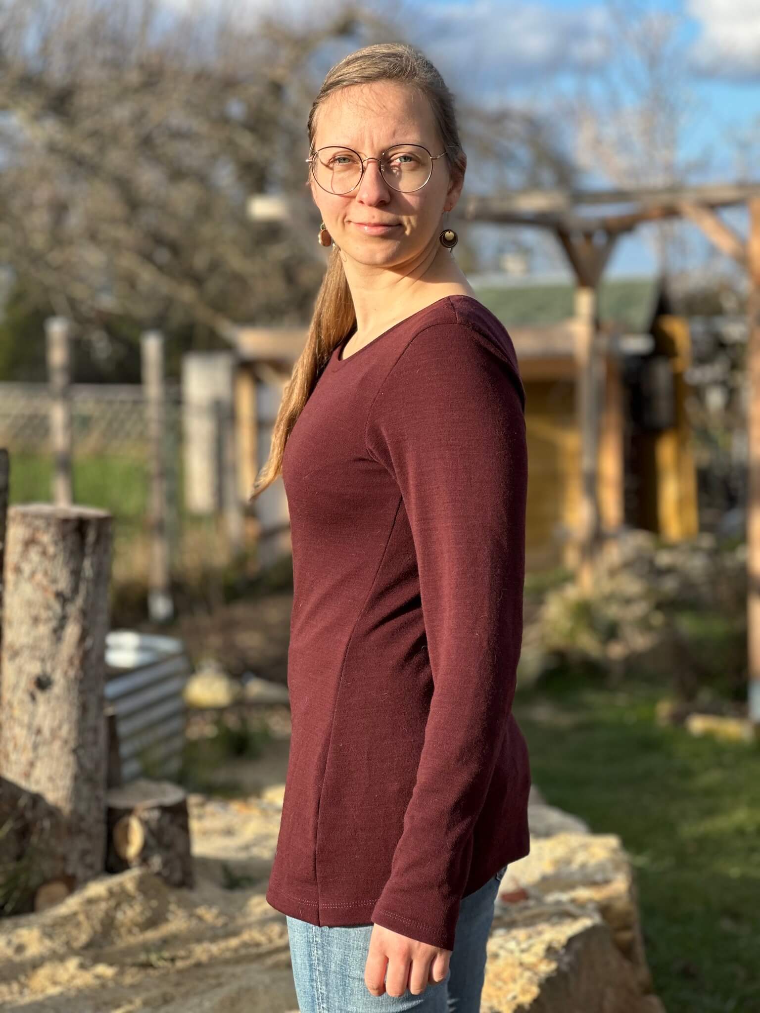 Das Schnittmuster „Miss Wollig“ ist ein figurbetontes Longsleeve bzw. ein Shirt-Schnitt, ausgelegt auf dehnbare Stoffe, wie z.B. Wolle-Seide, Wolle-Seide-Cino, Bambus-, Viskose-Jersey oder Ähnliches.