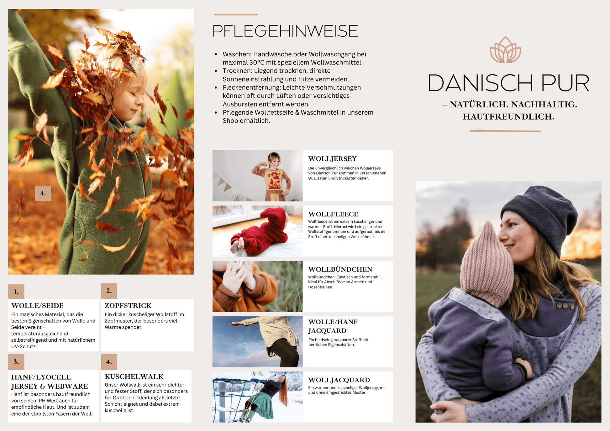 Hier verschenken wir - solange der Vorrat reicht - Wollbroschüren mit Pflegetipps.