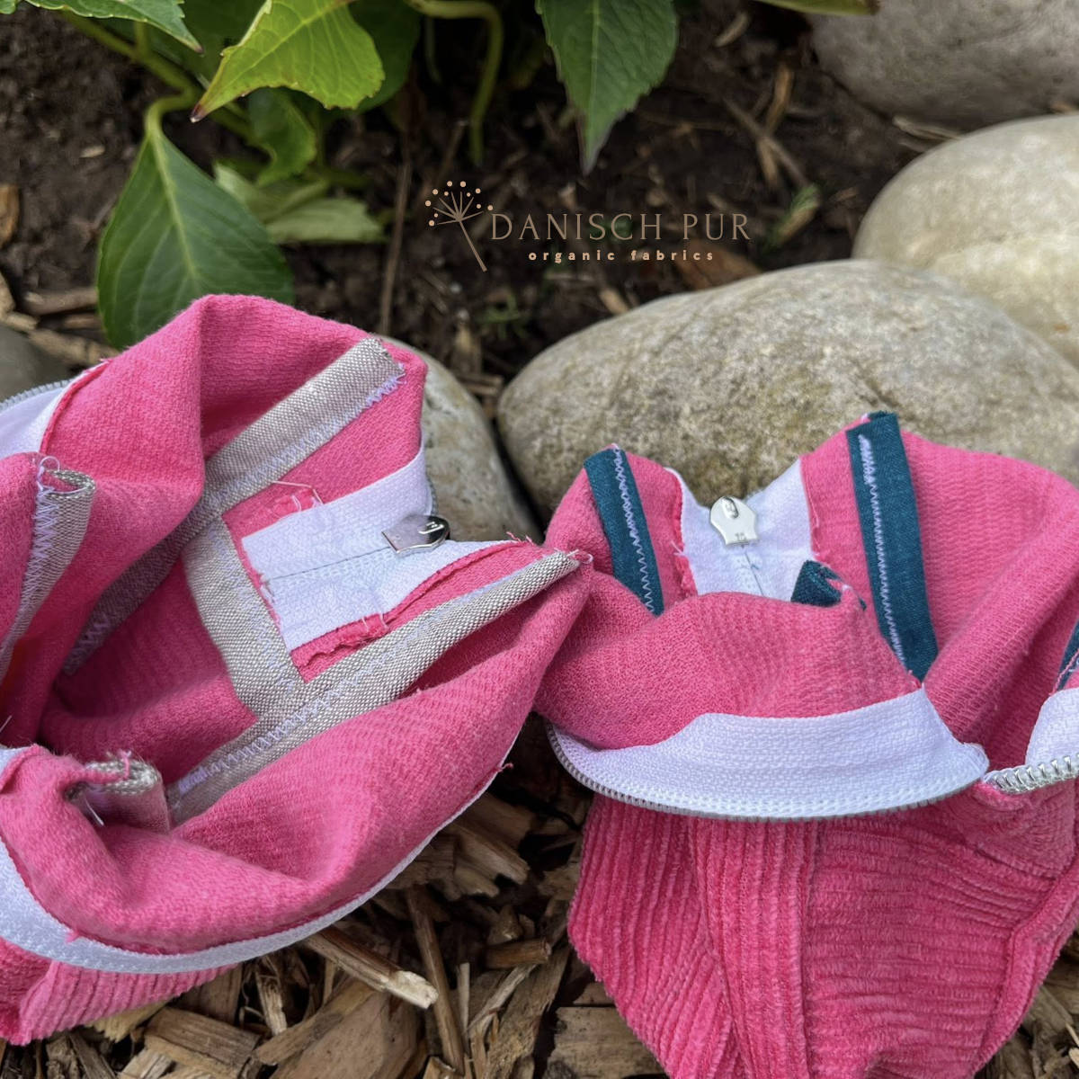 Als Nähgarn empfehlen wir am Eheste Korallpink - die Farbe des Garns ist etwas dunkler, als der Stoff, harmoniert aber schön.