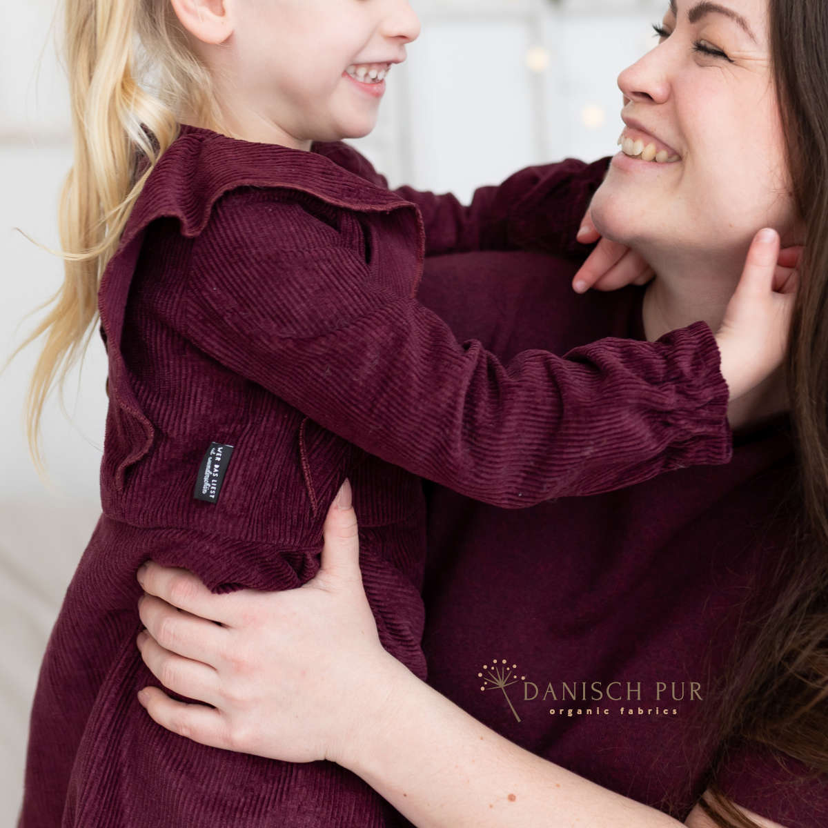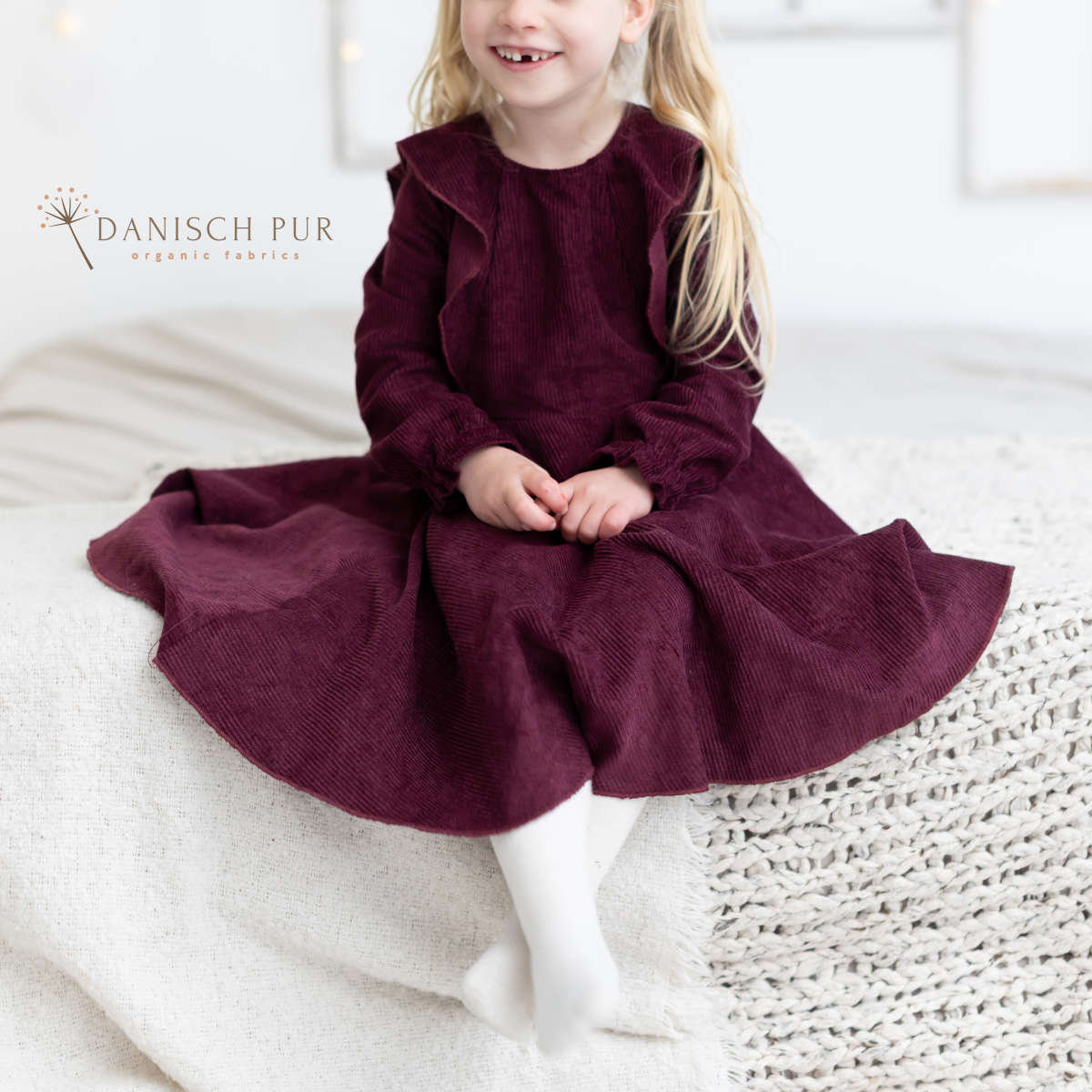 Der Stoff ist eine Webware, d.h. normal wird er nicht mit Bündchen vernäht. Wenn ihr das möchtet, könnt ihr es aber natürlich auch tun, daher haben wir ein paar Bilder mit Kombinationsideen hineingelegt. Das kann auch als Inspiration dienen, um eine gute Ahnung von der Farbe zu bekommen oder mit was ihr kombinieren möchtet.